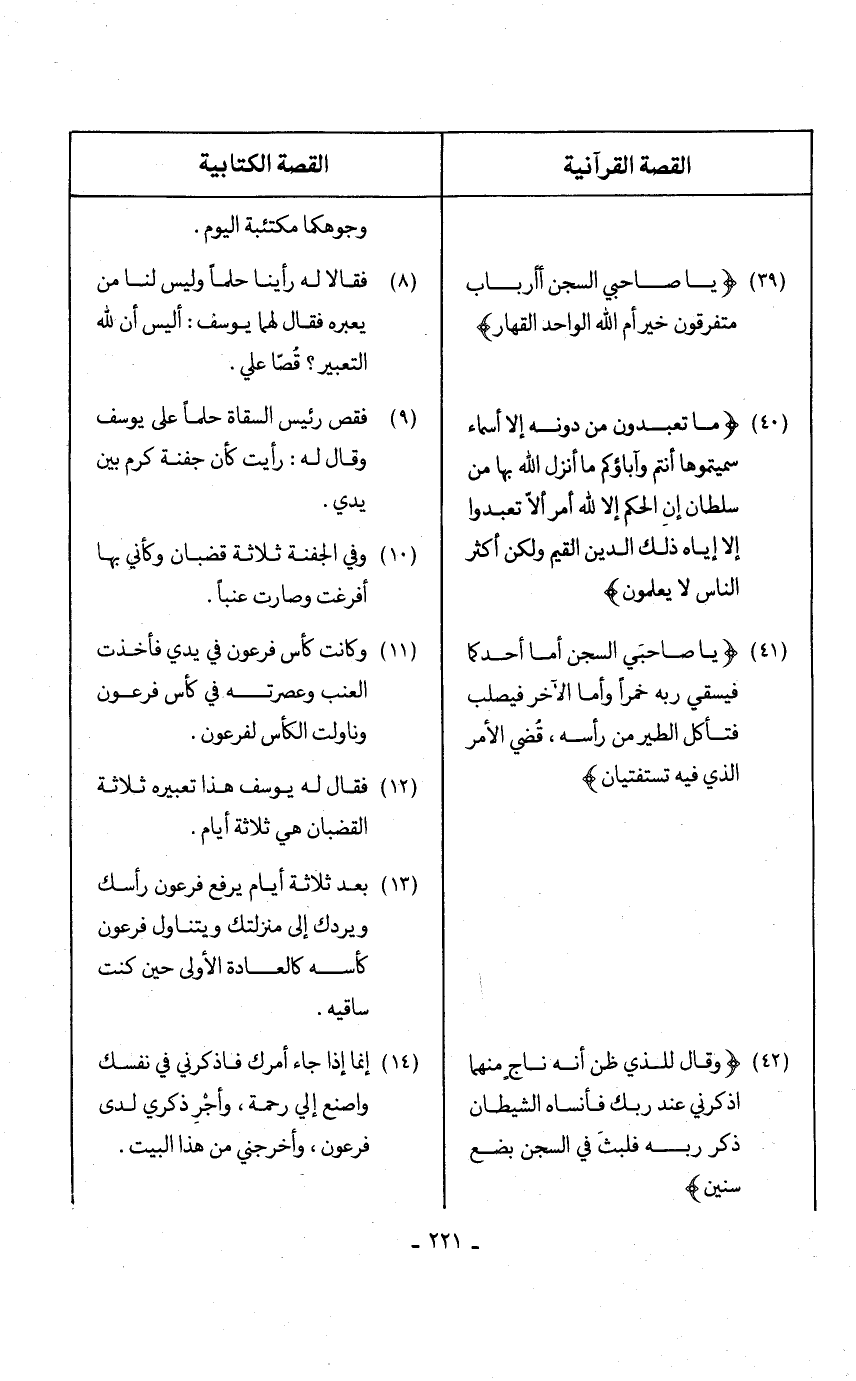 (40) {مَا تَعْبُدُونَ مِنْ دُونِهِ إِلَّا أَسْمَاءً سَمَّيْتُمُوهَا أَنْتُمْ وَآبَاؤُكُمْ مَا أَنْزَلَ اللَّهُ بِهَا مِنْ سُلْطَانٍ إِنِ الْحُكْمُ إِلَّا لِلَّهِ أَمَرَ أَلَّا تَعْبُدُوا إِلَّا إِيَّاهُ ذَلِكَ الدِّينُ الْقَيِّمُ وَلَكِنَّ أَكْثَرَ النَّاسِ لَا يَعْلَمُونَ} ... (9) فقص رئيس السقاة حلما على يوسف وقال له: رأيت كأن جفنة كرم بين يدي.