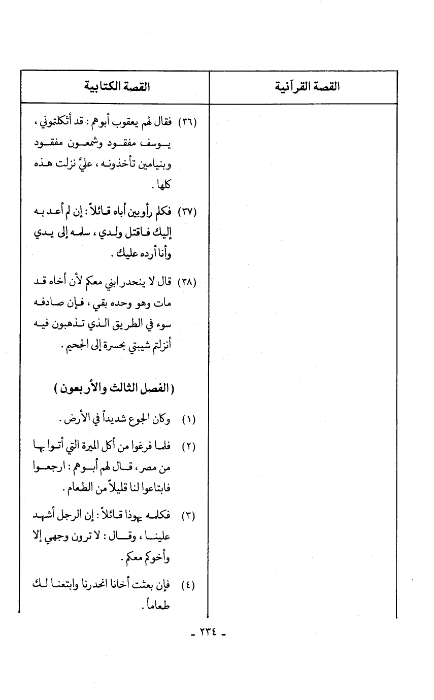 ........................................................................................ (36) فقال لهم يعقوب أبوهم: قد أثكلتموني، يوسف مفقود وشمعون مفقود وبنيامين تأخذونه، عليّ نزلت هذه كلها.