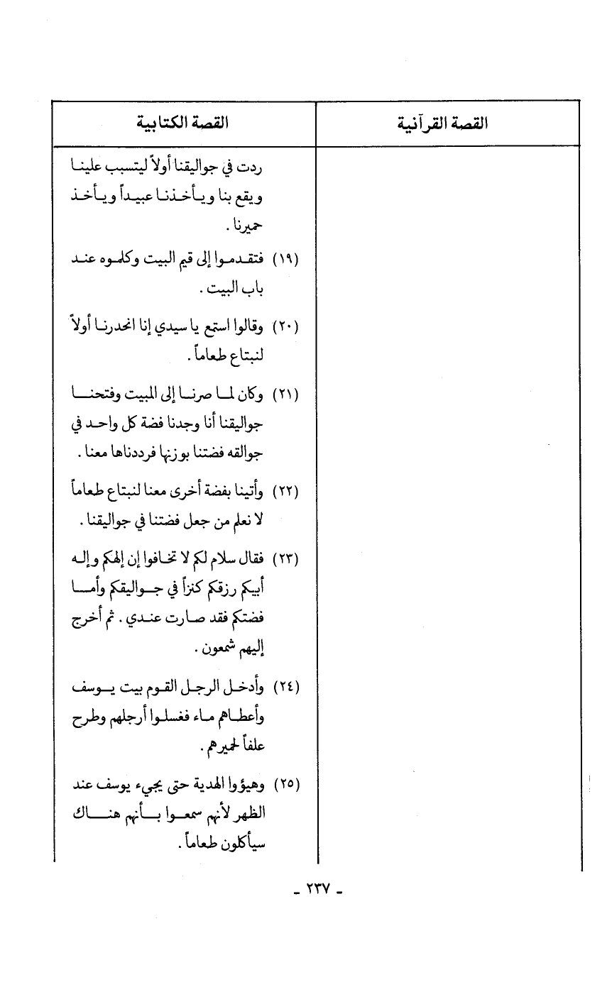 ........................................................................................ (24) وأدخل الرجل القوم بيت يوسف وأعطاهم ماء فغسلوا أرجلهم وطرح علفا لحميرهم.