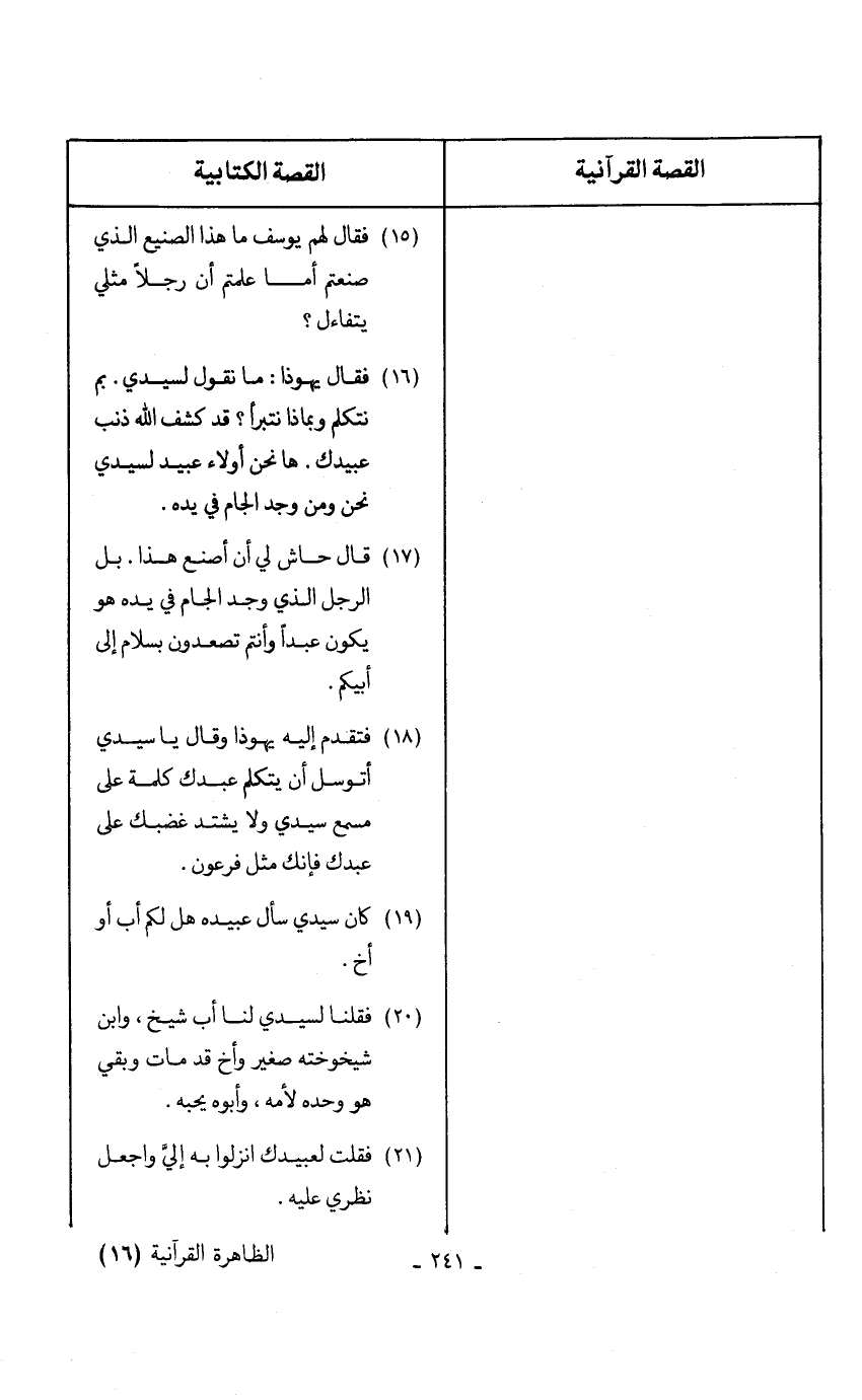..................................................................................... (16) فقال يهوذا: ما نقول لسيدي. بم نتكلم وبماذا نتبرأ؟ قد كشف الله ذنب عبيدك. ها نحن أولاء عبيد لسيدي نحن ومن وجد الجام في يده.