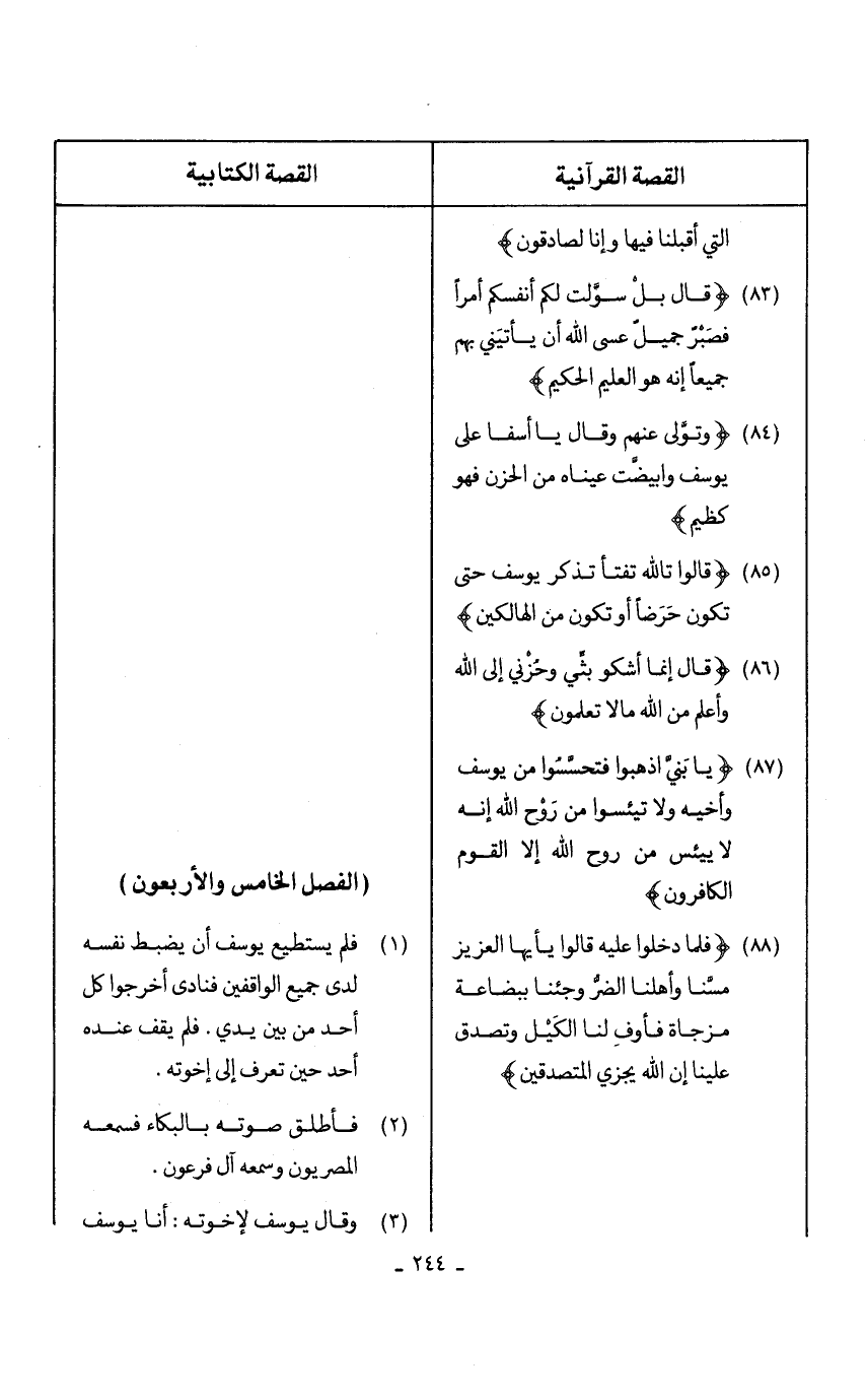 (88) {فَلَمَّا دَخَلُوا عَلَيْهِ قَالُوا يَا أَيُّهَا الْعَزِيزُ مَسَّنَا وَأَهْلَنَا الضُّرُّ وَجِئْنَا بِبِضَاعَةٍ مُزْجَاةٍ فَأَوْفِ لَنَا الْكَيْلَ وَتَصَدَّقْ عَلَيْنَا إِنَّ اللَّهَ يَجْزِي الْمُتَصَدِّقِينَ} .......... (1) فلم يستطيع يوسف أن يضبط نفسه لدى جميع الواقفين فنادى أخرجوا كل أحد من بين يدي. فلم يقف عنده أحد حين تعرف إلى إخوته.