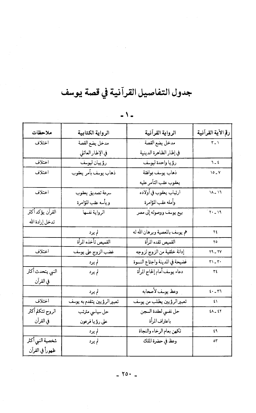 53 .................... وعظ في حضرة الملك ............................. لم يرد .................................................... شخصية النبي أكثر ظهورا في القرآن.
