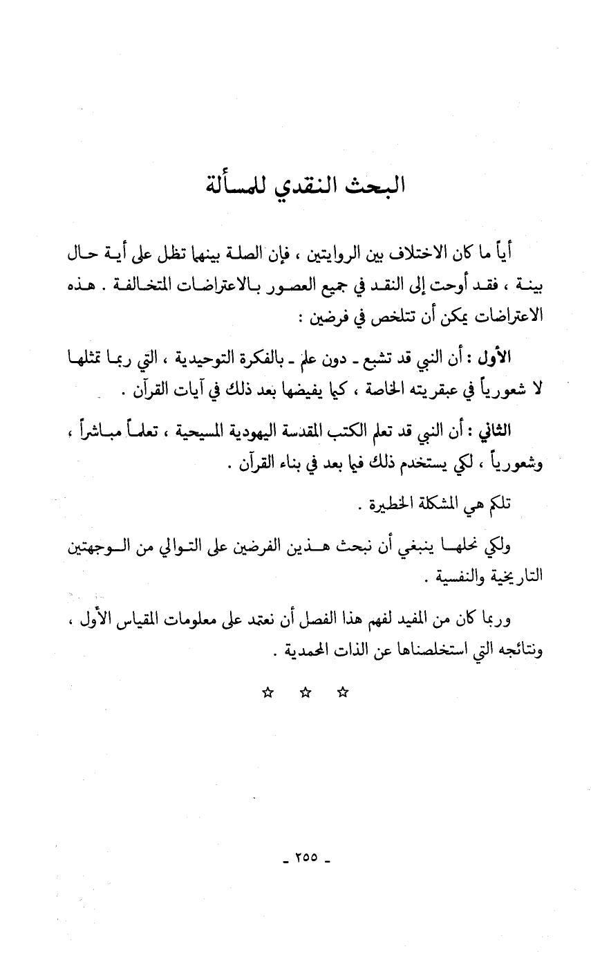 الثاني: أن النبي قد تعلم الكتب المقدسة اليهودية المسيحية، تعلماً مباشراً، وشعورياً، لكي يستخدم ذلك فيما بعد في بناء القرآن.