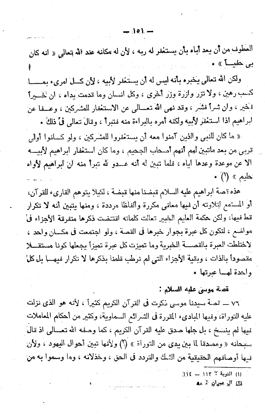 وموسى في نفس حائرة بين عزِّ الدنيا وقد تركه وراء ظهره، وجعل نداءه دبر أذنه، وبين الحق والعدل والإخلاص وهو إلى الثاني يميل، ومن الأول ينفر، وبينا هو على هذه الحال يتردّد بين ماضٍ مريح، وجديد يريد أن يخوض في شدائده؛ ليعيش كما يعيش قومه، فيشاركهم في ضرَّائهم وإذا النذير ينذره: {وَجَاءَ رَجُلٌ مِنْ أَقْصَى الْمَدِينَةِ يَسْعَى قَالَ يَا مُوسَى إِنَّ الْمَلَأَ يَأْتَمِرُونَ بِكَ لِيَقْتُلُوكَ فَاخْرُجْ إِنِّي لَكَ مِنَ النَّاصِحِينَ} [القصص: 20] ، قضي الأمر وانتهت الحيرة، واستقبل الحياة الجديدة بلأوائها وجهًا لوجه، ولنترك القول لكتاب الله تعالى يذكر لنا حاله من بعد ذلك الإنذار؛ إذ نجد التصوير الذي تعجز عنه كل أدوات التصوير الساكن والمتحرك، وهو يصوّر موسى قد أحس بخطر قوم فرعون، وفرعون وآل مصر يترقبونه، فالله يقول في كلام مصوّر للأرواح والأشباح: {فَخَرَجَ مِنْهَا خَائِفًا يَتَرَقَّبُ قَالَ رَبِّ نَجِّنِي مِنَ الْقَوْمِ الظَّالِمِينَ، وَلَمَّا تَوَجَّهَ تِلْقَاءَ مَدْيَنَ قَالَ عَسَى رَبِّي أَنْ يَهْدِيَنِي سَوَاءَ السَّبِيلِ، وَلَمَّا وَرَدَ مَاءَ مَدْيَنَ وَجَدَ عَلَيْهِ أُمَّةً مِنَ النَّاسِ يَسْقُونَ وَوَجَدَ مِنْ دُونِهِمُ امْرَأتَيْنِ تَذُودَانِ قَالَ مَا خَطْبُكُمَا قَالَتَا لَا نَسْقِي حَتَّى يُصْدِرَ الرِّعَاءُ وَأَبُونَا شَيْخٌ كَبِيرٌ، فَسَقَى لَهُمَا ثُمَّ تَوَلَّى إِلَى الظِّلِّ فَقَالَ رَبِّ إِنِّي لِمَا أَنْزَلْتَ إِلَيَّ مِنْ خَيْرٍ فَقِيرٌ} [القصص: 21-24] .