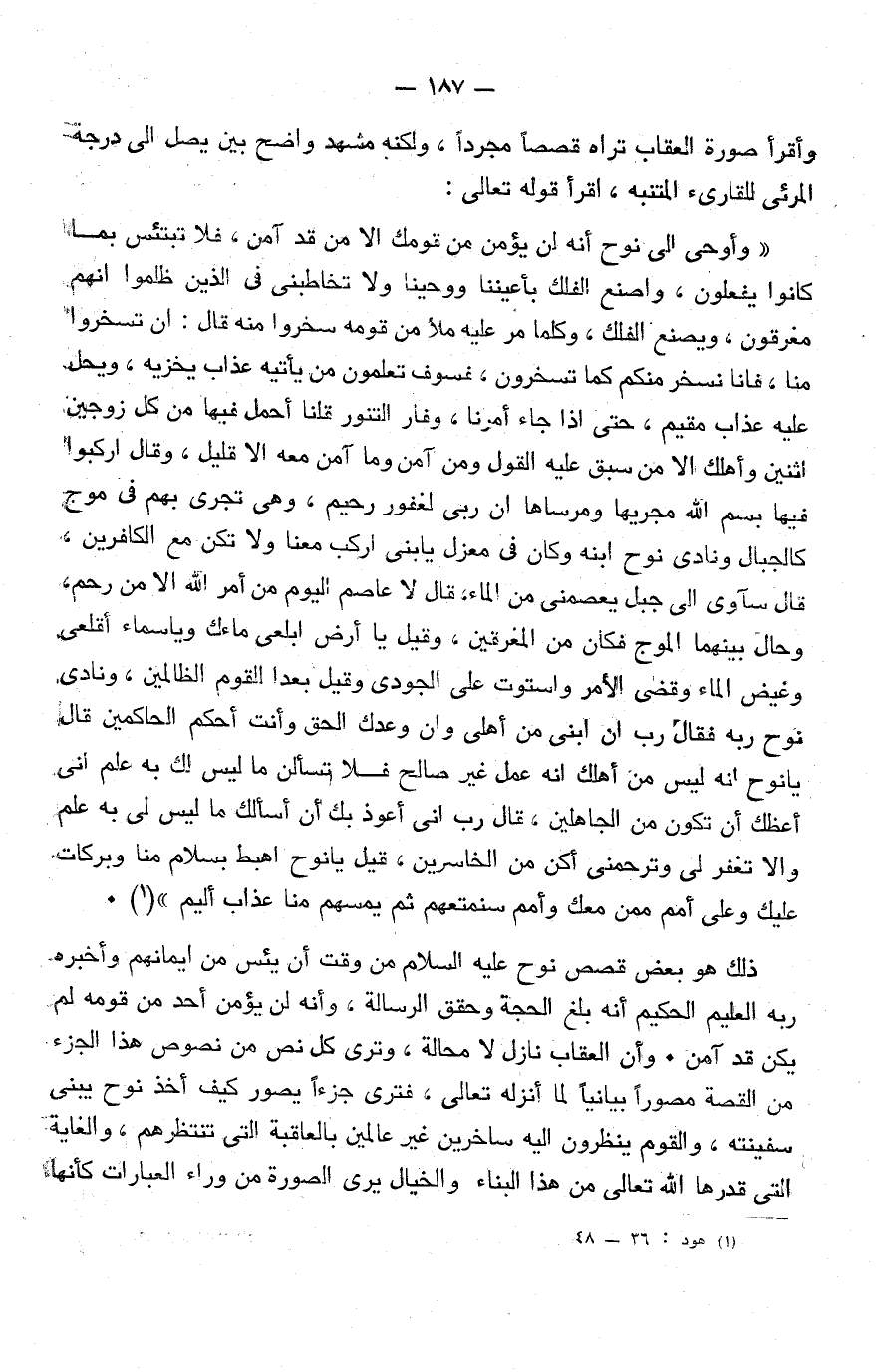 أولها: إن التشبيه بلا شك من أسرار الإعجاز، ويعده الباقلاني من أسباب الإعجاز، ولكن بعد الكلام في القرآن من غير مجاز ولا تشبيه بأيّ لون من ألوانه معجزًا بلغ ذروة البلاغة من غير أن تعرف سببًا واضحًا يدرس على أساسه، وتتعرف اسرار البلاغة فيه من إشعاعه، وليس معنى ذلك أنَّ الإعجاز ليس بيانيًّا، بل هو بياني، ويبدو ذلك في تساوق المعاني، وأخذ الألفاظ بعضها بحجز بعض في إحكام قول ونغم ورنين يكون أحيانًا شديدًا يصك آذان المنذرين، وأحيانًا كأنه نسيم عليل يحيي النفوس ويشفي أسقام القلوب، وأحيانًا يكون وصفًا عميقًا لخواطر النفوس، وما يستكن في القلوب، وهذه هي البلاغة في القرآن التي تعلو أن توضيحها الأفهام كما يرى ضوء الشمس ولا يعرف كنهه، وكما تحس بالحرارة الدافئة، ولا تعرف ماهيتها، والله على كل شيء قدير.