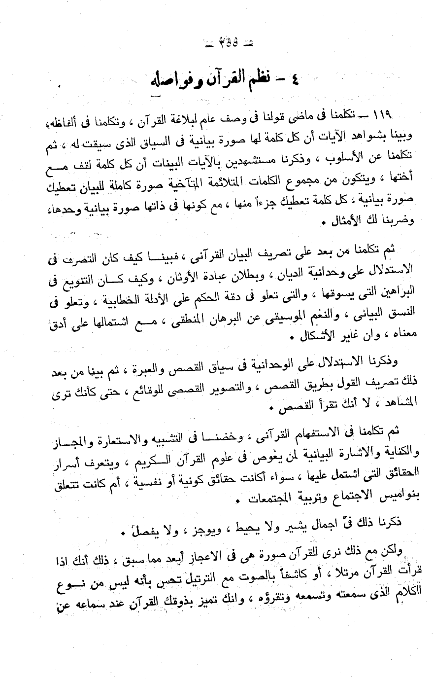 146- أساس الاستدلال الربط بين القضايا التي تصوّر أجزاء الحقائق في هذا الوجود، بأن يكون وجود بعض الأشياء علة لوجود شيء آخر، وبمقدار قوة الارتباط تكون قوة الاستدلال، وذلك بأن يكون أحدهما علة للآخر، وإذا وجدت العلة كان المعلول ثمرة لوجودها، وهما متلازمان من الناحية العقلية، أو على حسب مجرى الأمور، وإا ذكر المعلول كان كاشفًا لعلته؛ لأن ذكر النتائج مع إحدى المقدمتين لدليل يدل على المقدمة الثانية، ولأن المقدمات تطوى فيها، فإذا ذكر تحريم الخمر، وحاول العقل أن يتعرّف سبب التحريم يستطيع تكشفه من أوصاف الخمر، فإذا عرف الوصف المناسب للتحريم استيقن أنه السبب، وهو يكون وصفًا لا يشاركها فيه غيره من المباحات، وفي القرآن كثير، يكون فيه التعليل جزءًا من الدليل الذي يسوقه القرآن الكريم بتنزيل من العزيز الحكيم، ولنتل آية إباحة القتال، فإن فيها السبب الذي يبرره، والدليل الذي يوجبه، اتل قوله تعالى: {وَقَاتِلُوا فِي سَبِيلِ اللَّهِ الَّذِينَ يُقَاتِلُونَكُمْ وَلَا تَعْتَدُوا إِنَّ اللَّهَ لَا يُحِبُّ الْمُعْتَدِينَ، وَاقْتُلُوهُمْ حَيْثُ ثَقِفْتُمُوهُمْ وَأَخْرِجُوهُمْ مِنْ حَيْثُ أَخْرَجُوكُمْ وَالْفِتْنَةُ أَشَدُّ مِنَ الْقَتْلِ وَلَا تُقَاتِلُوهُمْ عِنْدَ الْمَسْجِدِ الْحَرَامِ حَتَّى يُقَاتِلُوكُمْ فِيهِ فَإِنْ قَاتَلُوكُمْ فَاقْتُلُوهُمْ كَذَلِكَ جَزَاءُ الْكَافِرِينَ، فَإِنِ انْتَهَوْا فَإِنَّ اللَّهَ غَفُورٌ رَحِيمٌ، وَقَاتِلُوهُمْ حَتَّى لَا تَكُونَ فِتْنَةٌ وَيَكُونَ الدِّينُ لِلَّهِ فَإِنِ انْتَهَوْا فَلَا عُدْوَانَ إِلَّا عَلَى الظَّالِمِينَ} [البقرة: 190-193] .