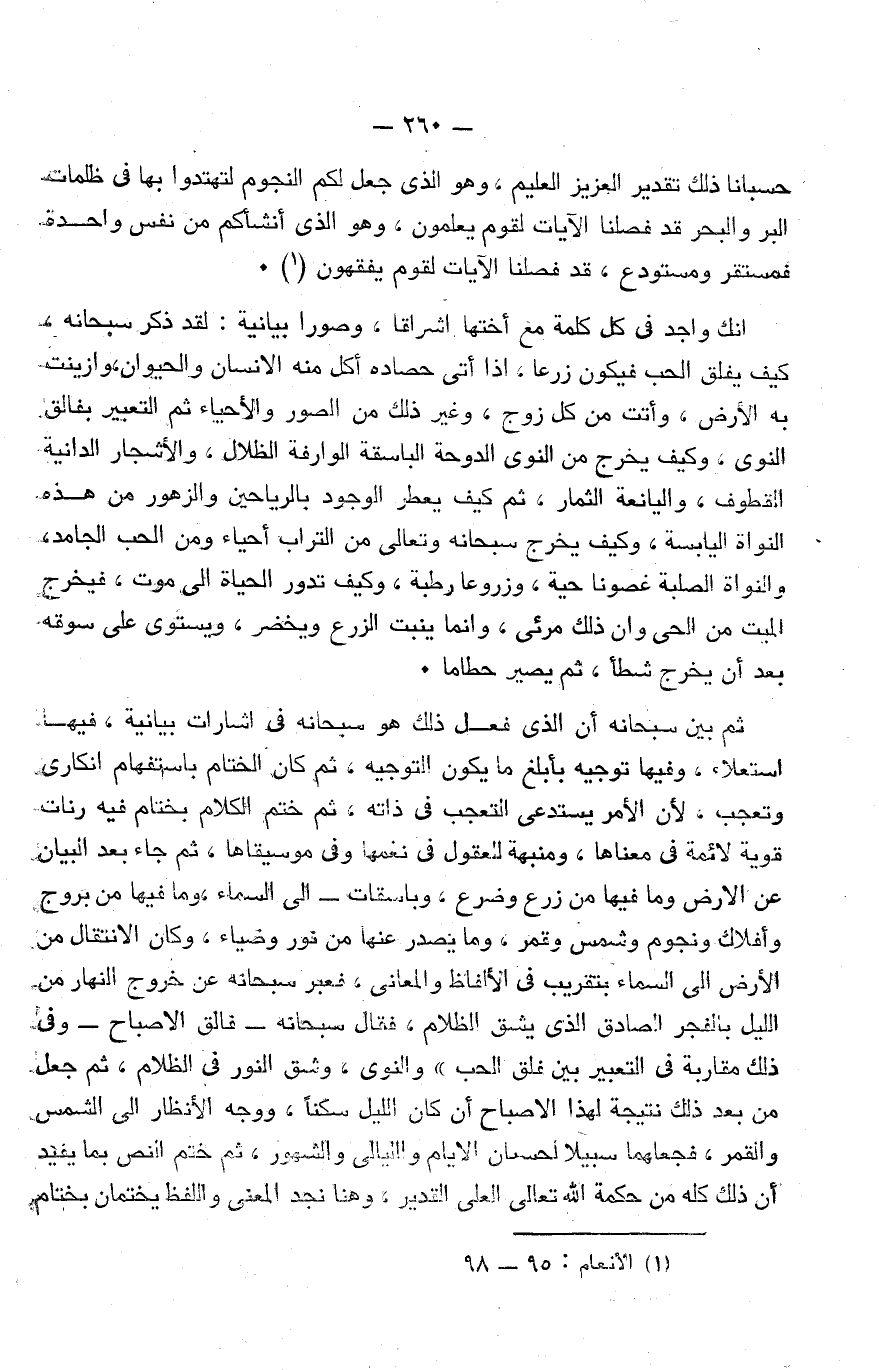ومن الأمثلة الموضحة التي تثبت كمال سلطان الله وأنه وحده القادر وبطلان غرور الإنسان إزاء قدرة الله تعالى قوله سبحانه: {وَاضْرِبْ لَهُمْ مَثَلًا رَجُلَيْنِ جَعَلْنَا لِأَحَدِهِمَا جَنَّتَيْنِ مِنْ أَعْنَابٍ وَحَفَفْنَاهُمَا بِنَخْلٍ وَجَعَلْنَا بَيْنَهُمَا زَرْعًا، كِلْتَا الْجَنَّتَيْنِ آَتَتْ أُكُلَهَا وَلَمْ تَظْلِمْ مِنْهُ شَيْئًا وَفَجَّرْنَا خِلَالَهُمَا نَهَرًا، وَكَانَ لَهُ ثَمَرٌ فَقَالَ لِصَاحِبِهِ وَهُوَ يُحَاوِرُهُ أَنَا أَكْثَرُ مِنْكَ مَالًا وَأَعَزُّ نَفَرًا، وَدَخَلَ جَنَّتَهُ وَهُوَ ظَالِمٌ لِنَفْسِهِ قَالَ مَا أَظُنُّ أَنْ تَبِيدَ هَذِهِ أَبَدًا، وَمَا أَظُنُّ السَّاعَةَ قَائِمَةً وَلَئِنْ رُدِدْتُ إِلَى رَبِّي لَأَجِدَنَّ خَيْرًا مِنْهَا مُنْقَلَبًا، قَالَ لَهُ صَاحِبُهُ وَهُوَ يُحَاوِرُهُ أَكَفَرْتَ بِالَّذِي خَلَقَكَ مِنْ تُرَابٍ ثُمَّ مِنْ نُطْفَةٍ ثُمَّ سَوَّاكَ رَجُلًا، لَكِنَّا هُوَ اللَّهُ رَبِّي وَلَا أُشْرِكُ بِرَبِّي أَحَدًا، وَلَوْلَا إِذْ دَخَلْتَ جَنَّتَكَ قُلْتَ مَا شَاءَ اللَّهُ لَا قُوَّةَ إِلَّا بِاللَّهِ إِنْ تَرَنِ أَنَا أَقَلَّ مِنْكَ مَالًا وَوَلَدًا، فَعَسَى رَبِّي أَنْ يُؤْتِيَنِ خَيْرًا مِنْ جَنَّتِكَ وَيُرْسِلَ عَلَيْهَا حُسْبَانًا مِنَ السَّمَاءِ فَتُصْبِحَ صَعِيدًا زَلَقًا، أَوْ يُصْبِحَ مَاؤُهَا غَوْرًا فَلَنْ تَسْتَطِيعَ لَهُ طَلَبًا، وَأُحِيطَ بِثَمَرِهِ فَأَصْبَحَ يُقَلِّبُ كَفَّيْهِ عَلَى مَا أَنْفَقَ فِيهَا وَهِيَ خَاوِيَةٌ عَلَى عُرُوشِهَا وَيَقُولُ يَا لَيْتَنِي لَمْ أُشْرِكْ بِرَبِّي أَحَدًا، وَلَمْ تَكُنْ لَهُ فِئَةٌ يَنْصُرُونَهُ مِنْ دُونِ اللَّهِ وَمَا كَانَ مُنْتَصِرًا، هُنَالِكَ الْوَلَايَةُ لِلَّهِ الْحَقِّ هُوَ خَيْرٌ ثَوَابًا وَخَيْرٌ عُقْبًا} [الكهف: 32-44] .