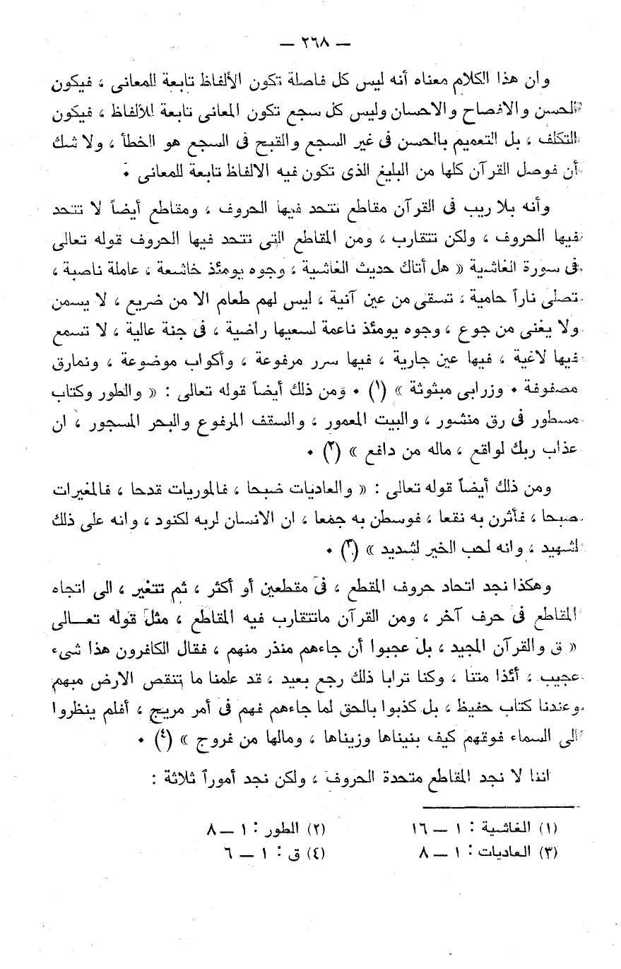 كَفَرُوا أَنَّ السَّمَاوَاتِ وَالْأَرْضَ كَانَتَا رَتْقًا فَفَتَقْنَاهُمَا وَجَعَلْنَا مِنَ الْمَاءِ كُلَّ شَيْءٍ حَيٍّ أَفَلَا يُؤْمِنُونَ} [الأنبياء: 30] اقرأ هذا وارجع البصر فيها كرتين، ألَا ترى فيها توجيه الأذهان إلى عظيم قدرة الله تعالى وقوة سلطانه على الوجود كله، وبيِّن سبحانه كيف اخترع وأبدع على غير مثال سبق، ويثبت بذلك أنه وحده الأحق بالعبادة، وأن القارئ للقرآن من دهماء الناس يرى فيها علمًا بما لم يكن يعلم، قد أدركه بأسهل بيان وأبلغه، ويرى فيها العالم الفيلسوف الباحث في نشأة الكون دقة العلم وإحكامه، وموافقة ما وصل إليه العقل البشري لما جاء بذلك النص الكريم مع سمو البيان وعلوّ الدليل، فتبارك الذي أنزل القرآن.