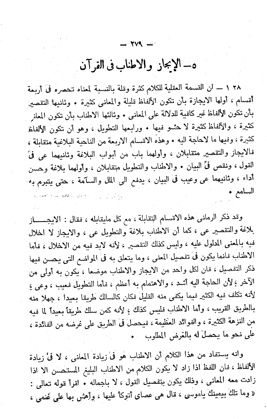 وفي الحقِّ أن الناس لو شغلوا بدراسة القرآن، وما فيه من استدلال لينهجوا على نهجه، ويسيروا في طريقه، لكان لهم من ذلك علم كثير، فإن القرآن قد اشتمل على مناهد في الاستدلال والجدل والتأثير تتكشَّف عن أدقِّ نواميس النفس الإنسانية. وتبيِّن شيئًا كثيرًا من أحوال الجماعات النفسية والفكرية، وفيها الطب لأدوائها، والعلاج الناجع لأمراضها، والدواء الشافي لعللها وأسقامها.