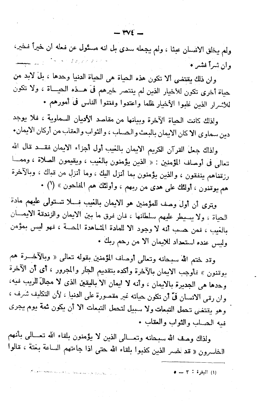 ويقول سبحانه في القوة المدركة في الإنسان التي بها يكون التكليف والحساب والثواب والعقاب: {أَيَحْسَبُ الْإِنْسَانُ أَنْ يُتْرَكَ سُدًى، أَلَمْ يَكُ نُطْفَةً مِنْ مَنِيٍّ يُمْنَى، ثُمَّ كَانَ عَلَقَةً فَخَلَقَ فَسَوَّى، فَجَعَلَ مِنْهُ الزَّوْجَيْنِ الذَّكَرَ وَالْأُنْثَى، أَلَيْسَ ذَلِكَ بِقَادِرٍ عَلَى أَنْ يُحْيِيَ الْمَوْتَى} [القيامة: 78] .