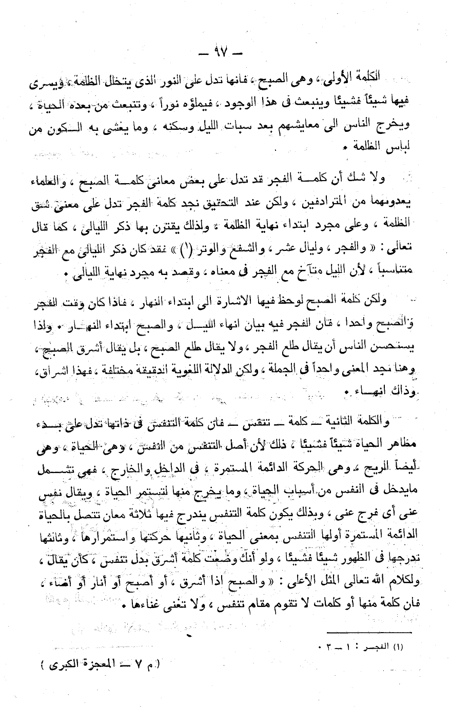 58- والآية السامية تحوي في سياقها دليل الرسالة، فيقول تعالى: {مَا كُنْتَ تَدْرِي مَا الْكِتَابُ وَلَا الْإِيمَانُ} ، وإن هذا النص الكريم مع إيجازه يرمي إلى ثلاث حقائق: