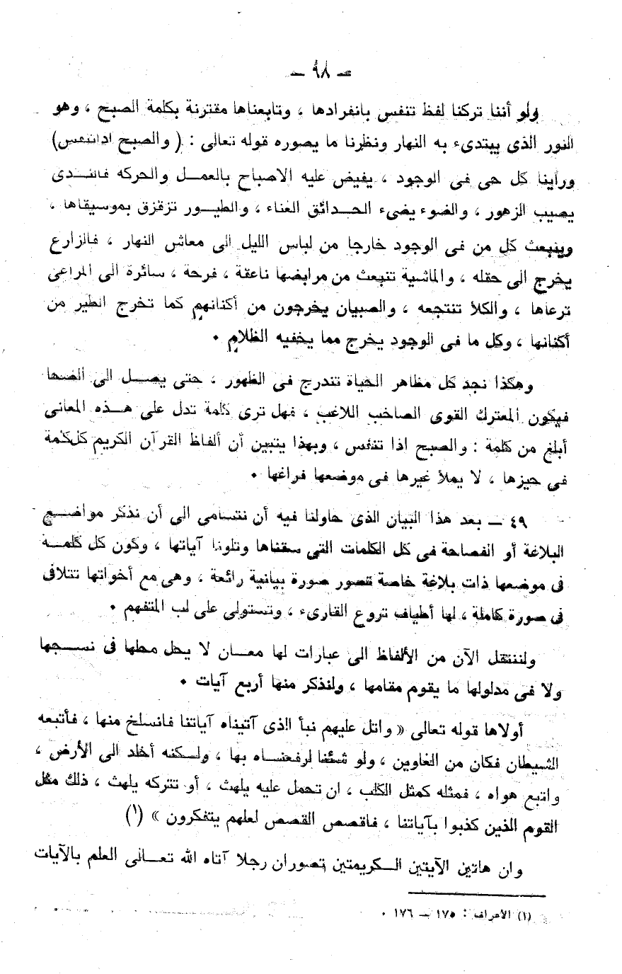 ولا شك أن كل كلمة من هذا النص وما سبقه تتآخى مع ما بعدها وما قبلها في تقرير حقيقة ثابتة، وهي أنَّ القرآن روح من عند الله، وكل روح فيها حياة، وحياته في الشريعة التي أنزلها، والتوحيد الذي دعا إليه، والحق الذي أثبته، والصلاح الذي بثه، ودفع الفساد في الأرض، ولكن القرآن نور هذا الوجود {وَلَكِنْ جَعَلْنَاهُ نُورًا نَهْدِي بِهِ مَنْ نَشَاءُ مِنْ عِبَادِنَا} .