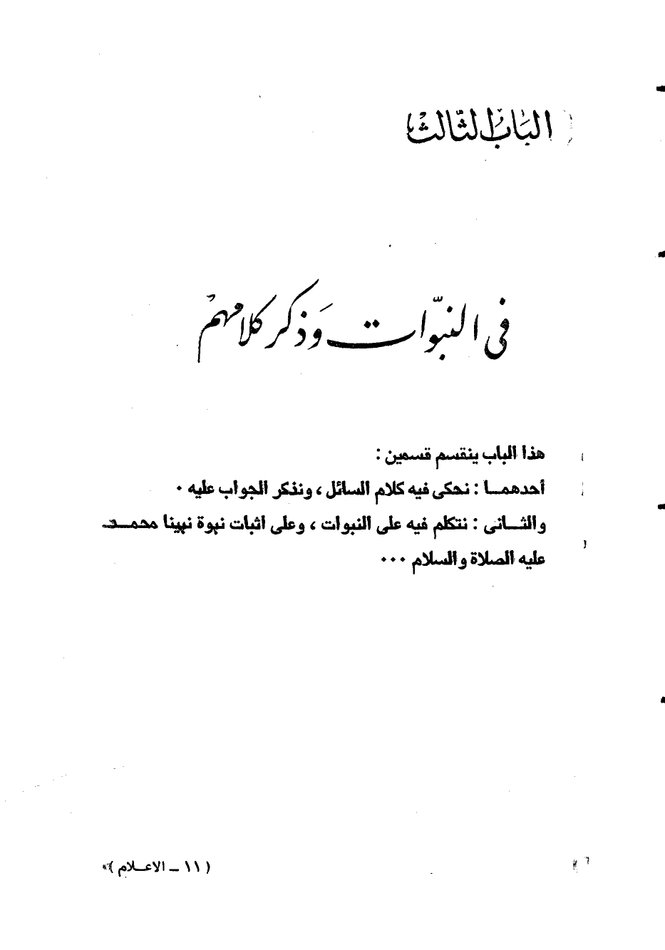 وَالثَّانِي نتكلم فِيهِ على النبوات وعَلى إِثْبَات نبوة نَبينَا مُحَمَّد عَلَيْهِ الصَّلَاة وَالسَّلَام