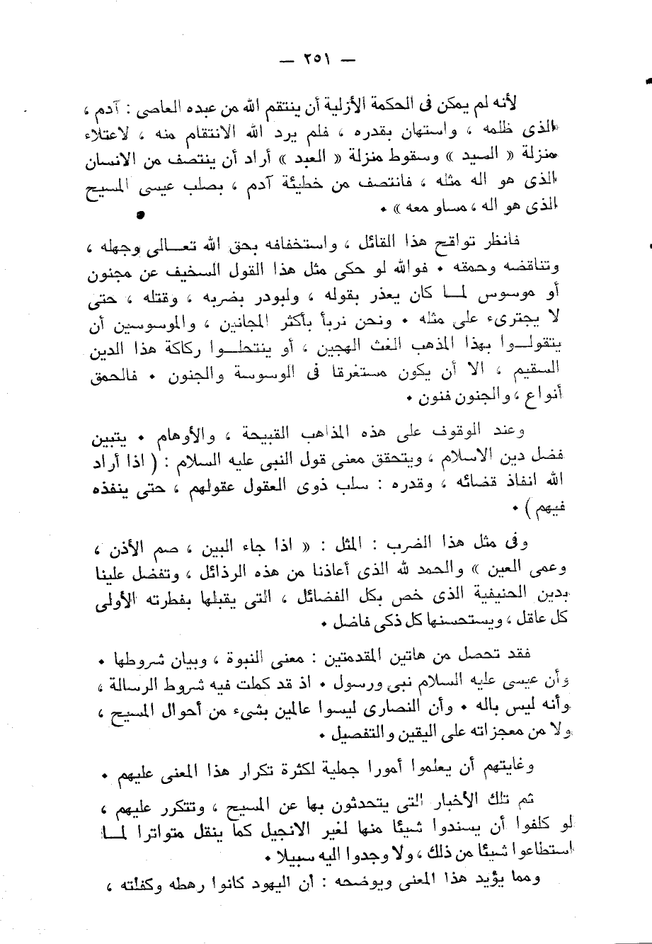 لِأَنَّهُ لم يُمكن فِي الْحِكْمَة الأزلة أَن ينْتَقم الله من عَبده العَاصِي آدم الَّذِي ظلمه واستهان بِقَدرِهِ فَلم يرد الله الإنتقام مِنْهُ لإعتلاء منزلَة السَّيِّد وَسُقُوط منزلَة العَبْد أَرَادَ أَن ينتصف من الْإِنْسَان الَّذِي هُوَ إِلَه مثله فانتصف من خَطِيئَة آدم بصلب عِيسَى الْمَسِيح الَّذِي هُوَ إِلَه مسَاوٍ مَعَه