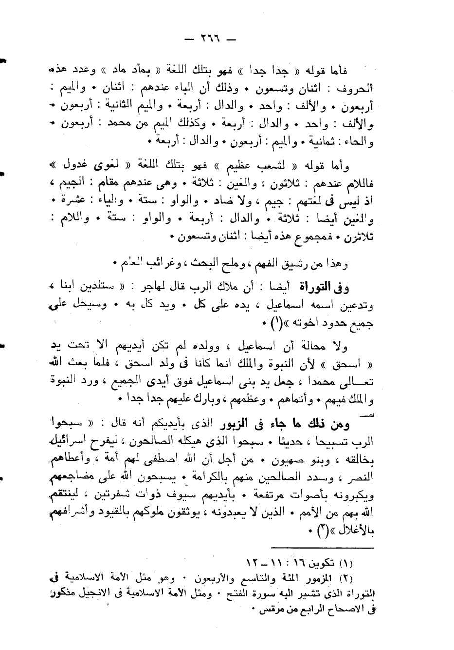 وَأما قَوْله لشعب عَظِيم فَهُوَ بِتِلْكَ اللُّغَة لغَوِيّ غدول فَاللَّام عِنْدهم ثَلَاثُونَ والغين ثَلَاثَة وَهِي عِنْدهم مقَام الْجِيم إِذْ لَيْسَ فِي لغتهم جِيم وَلَا ضاد وَالْوَاو سِتَّة وَالْيَاء عشرَة والغين أَيْضا ثَلَاثَة وَالدَّال أَرْبَعَة وَالْوَاو سِتَّة وَاللَّام ثَلَاثُونَ فمجموع هَذِه أَيْضا إثنان وَتسْعُونَ