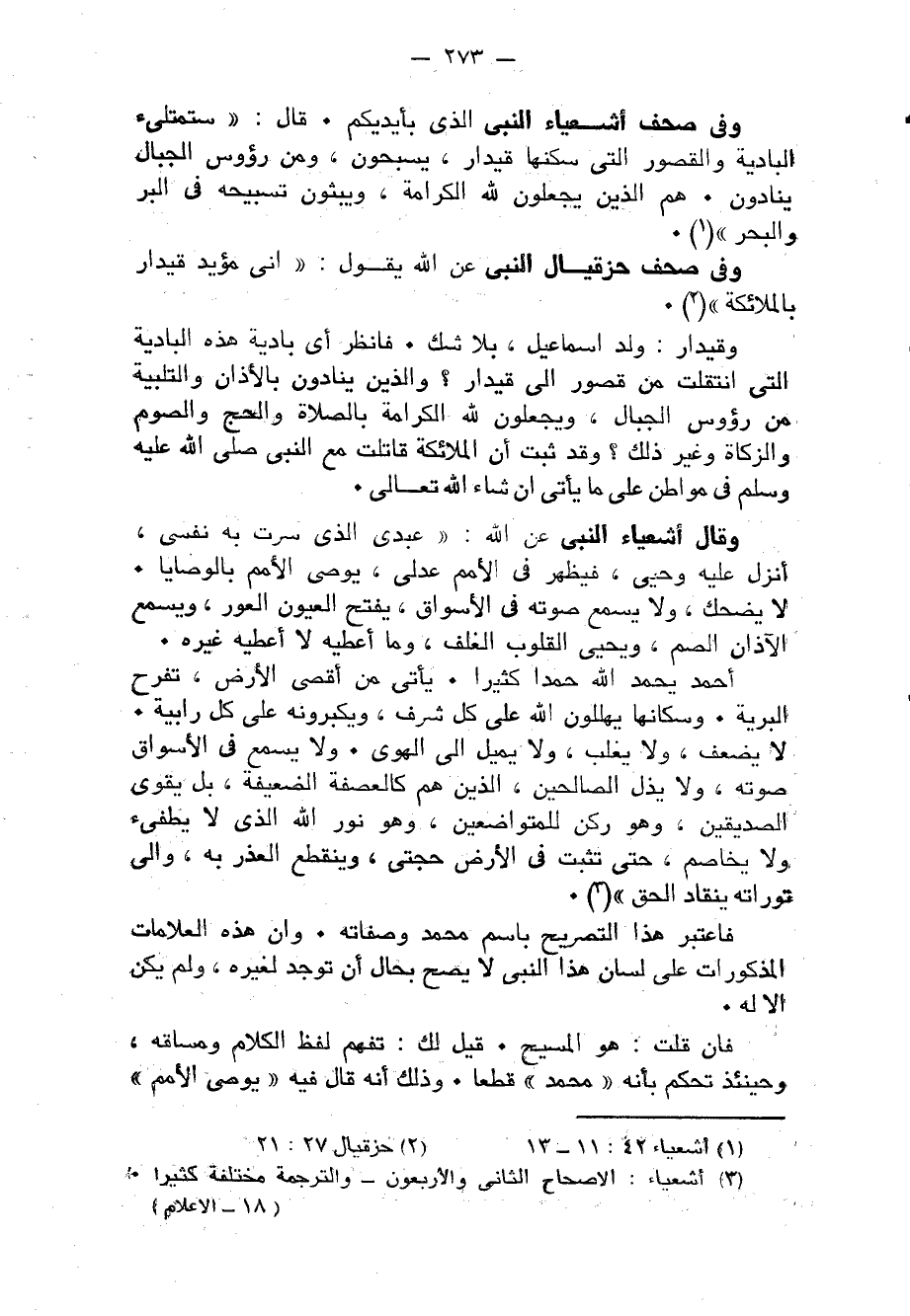 فَاعْتبر هَذَا التَّصْرِيح باسم مُحَمَّد وَصِفَاته وَإِن هَذِه العلامات الْمَذْكُورَات على لِسَان هَذَا النَّبِي لَا يَصح بِحَال أَن تُوجد لغيره وَلم يكن إِلَّا لَهُ