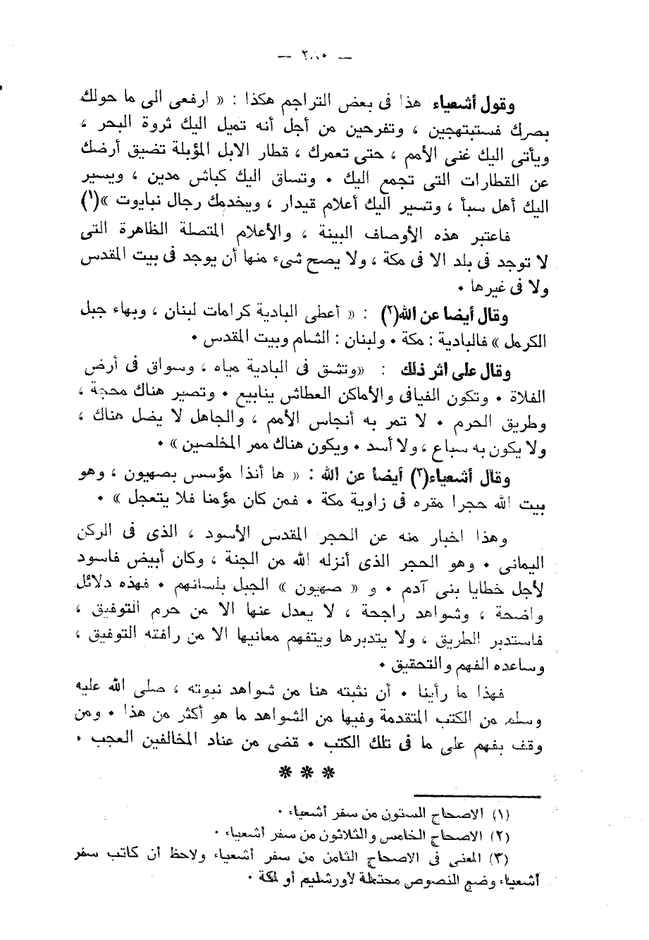 فَاعْتبر هَذِه الْأَوْصَاف الْبَيِّنَة والأعلام الْمُتَّصِلَة الظَّاهِرَة الَّتِي لَا تُوجد فِي بلد إِلَّا فِي مَكَّة وَلَا يَصح شَيْء مِنْهَا أَن يُوجد فِي بَيت الْمُقَدّس وَلَا فِي غَيرهَا