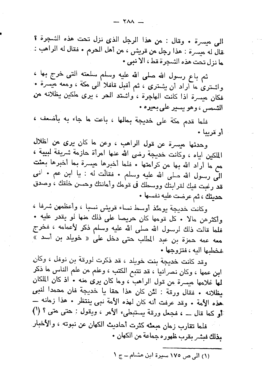 إِلَى ميسرَة وَقَالَ من هَذَا الرجل الَّذِي نزل تَحت هَذِه الشَّجَرَة قَالَ لَهُ ميسرَة هَذَا رجل من قُرَيْش من أهل الْحرم فَقَالَ لَهُ الراهب مَا نزل تَحت هَذِه الشَّجَرَة قطّ إِلَّا نَبِي