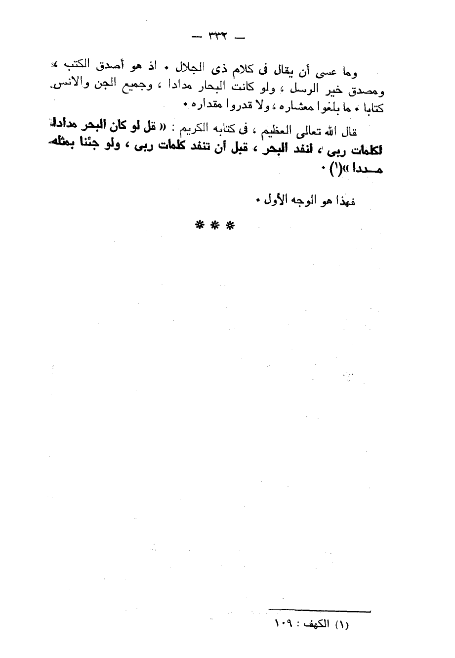 قَالَ الله تَعَالَى الْعَظِيم فِي كِتَابه الْكَرِيم {قل لَو كَانَ الْبَحْر مدادا لكلمات رَبِّي لنفد الْبَحْر قبل أَن تنفد كَلِمَات رَبِّي وَلَو جِئْنَا بِمثلِهِ مدَدا}