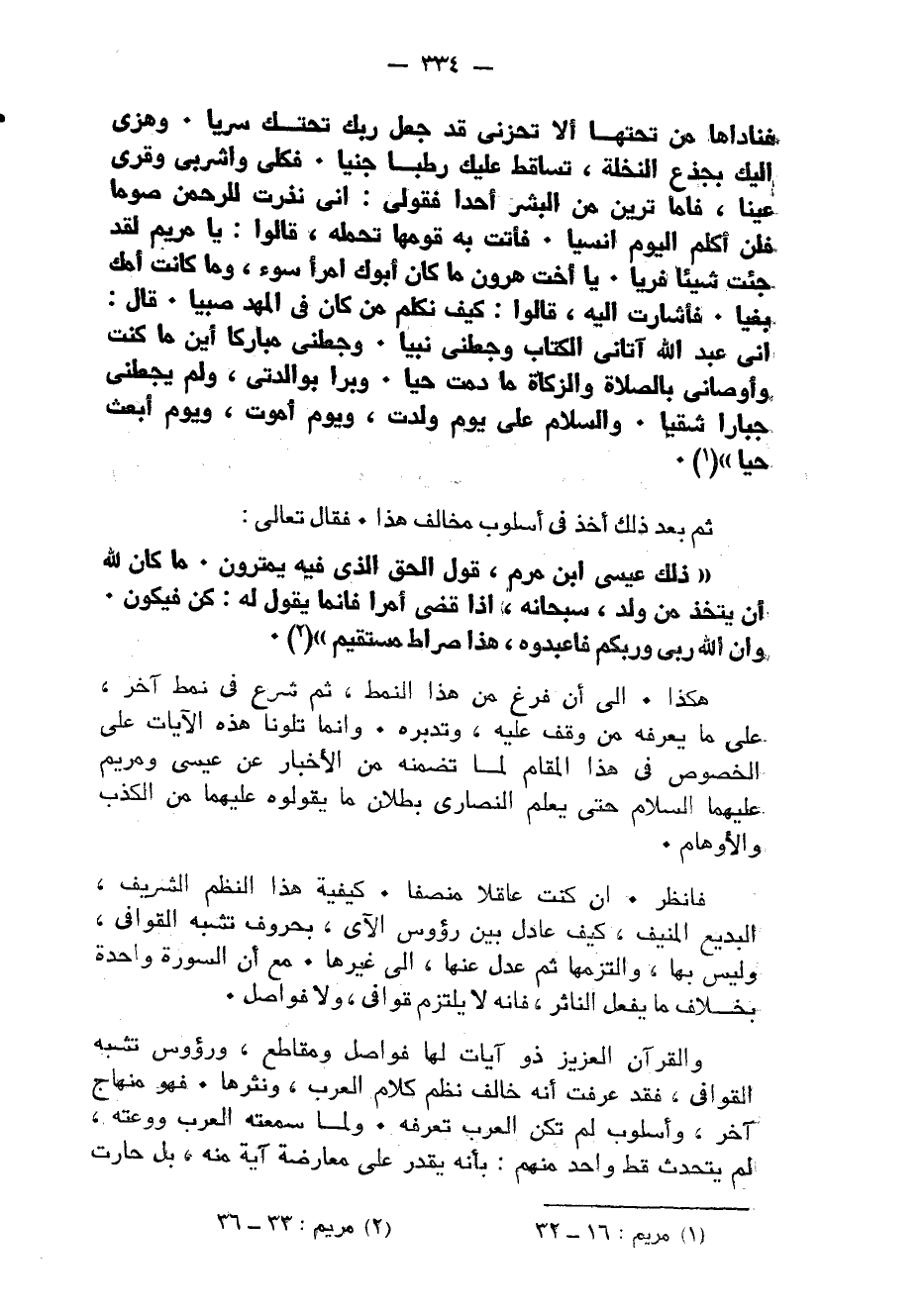 هَكَذَا إِلَى أَن فرغ من هَذَا النمط ثمَّ شرع فِي نمط آخر على مَا يعرفهُ من وقف عَلَيْهِ وتدبره وَإِنَّمَا تلونا هَذِه الْآيَات على الْخُصُوص فِي هَذَا الْمقَام لما تضمنه من الْأَخْبَار عَن عِيسَى وَمَرْيَم عَلَيْهِمَا السَّلَام حَتَّى يعلم النَّصَارَى بطلَان مَا يقولوه عَلَيْهِمَا من الْكَذِب والأوهام