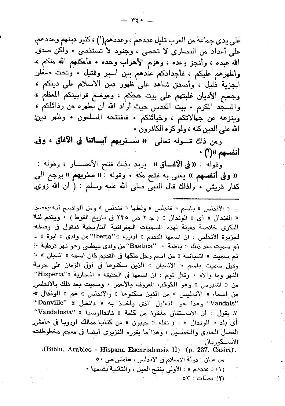 على يَدي جمَاعَة من الْعَرَب قَلِيل عَددهمْ وعددهم كثير دينهم ومددهم على أعداد من النَّصَارَى لَا تحصى وجنود لَا تستقى وَلَكِن صدق الله عَبده وأنجز وعده وَهزمَ الْأَحْزَاب وَحده فأمكنهم الله مِنْكُم وأظهرهم عَلَيْكُم فأجدادكم عِنْدهم بَين أَسِير وقتيل وَتَحْت صغَار الْجِزْيَة ذليل وأصدق شَاهد على ظُهُور دين الْإِسْلَام على دينكُمْ وَجَمِيع الْأَدْيَان غلبتهم على بَيت حَجكُمْ وَمَوْضِع قرابينكم الْمُعظم وَالْمَسْجِد المكرم بَيت الْمُقَدّس حَيْثُ أَرَادَ الله أَن يطهره من رذائلكم وينزهه عَن جهالاتكم وخبائثكم فافتتحه الْمُسلمُونَ وَظهر دين الله على الدّين كُله وَلَو كره الْكَافِرُونَ