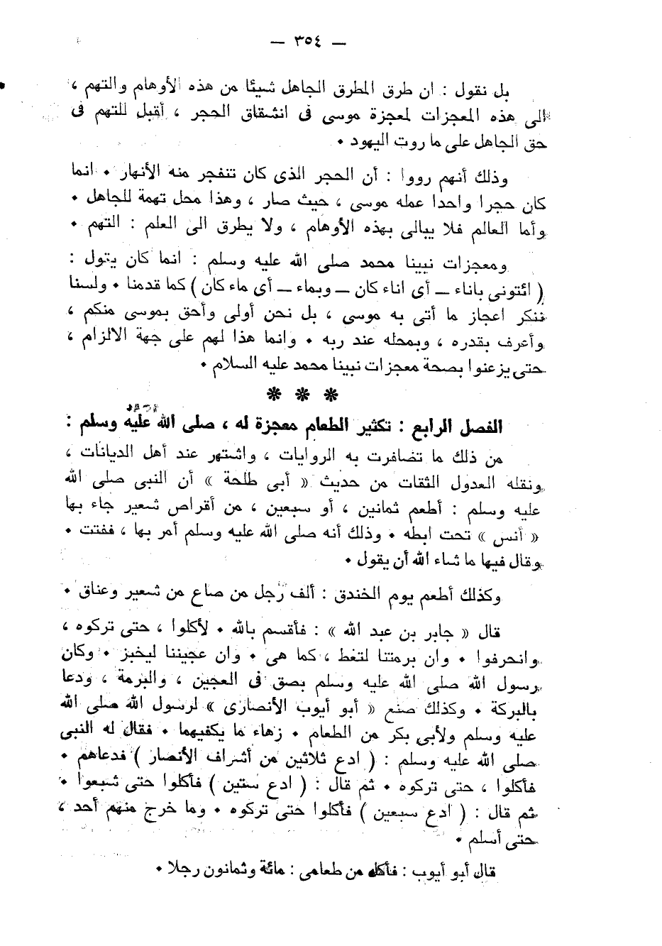 الْفَصْل الرَّابِع تَكْثِير الطَّعَام معْجزَة لَهُ صلى الله عَلَيْهِ وَسلم