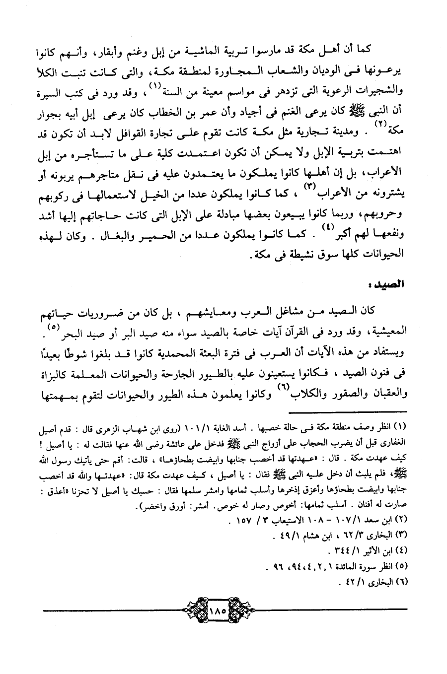 كما أن أهل مكة قد مارسوا تربية الماشية من إبل وغنم وأبقار، وأنهم كانوا يرعونها في الوديان والشعاب المجاورة لمنطقة مكة، والتي كانت تنبت الكلأ والشجيرات الرعوية التي تزدهر في مواسم معينة من السنة1، وقد ورد في كتب السيرة أن النبي -صلى الله عليه وسلم- كان يرعى الغنم في أجياد، وأن عمر بن الخطاب كان يرعى إبل أبيه بجوار مكة2. ومدينة تجارية مثل مكة كانت تقوم على تجارة القوافل لا بد أن تكون قد اهتمت بتربية الإبل، ولا يمكن أن تكون اعتمدت كلية على ما تستأجره من إبل الأعراب، بل إن أهلها كانوا يملكون ما يعتمدون عليه في نقل متاجرهم يربونه أو يشترونه من الأعراب 3، كما كانوا يملكون عددًا من الخيل لاستعمالها في ركوبهم وحروبهم، وربما كانوا يبيعون بعضها مبادلة على الإبل التي كانت حاجاتهم إليها أشد ونفعها لهم أكبر4.كما كانوا يملكون عددًا من الحمير والبغال. وكان لهذه الحيوانات كلها سوق نشيطة في مكة.