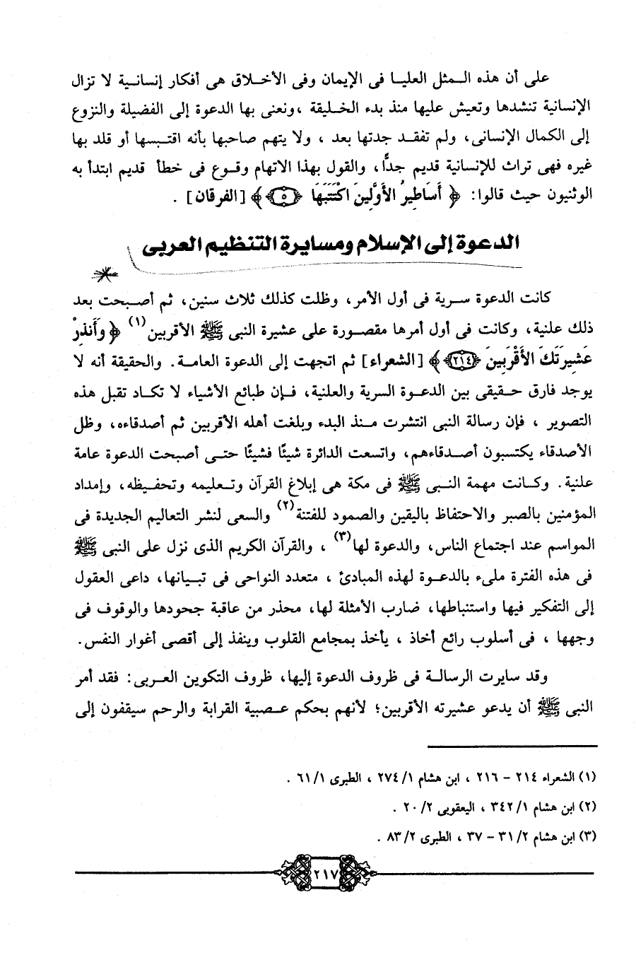 1 الشعراء 214- 216، ابن هشام 1/ 274، الطبري 1/ 61.