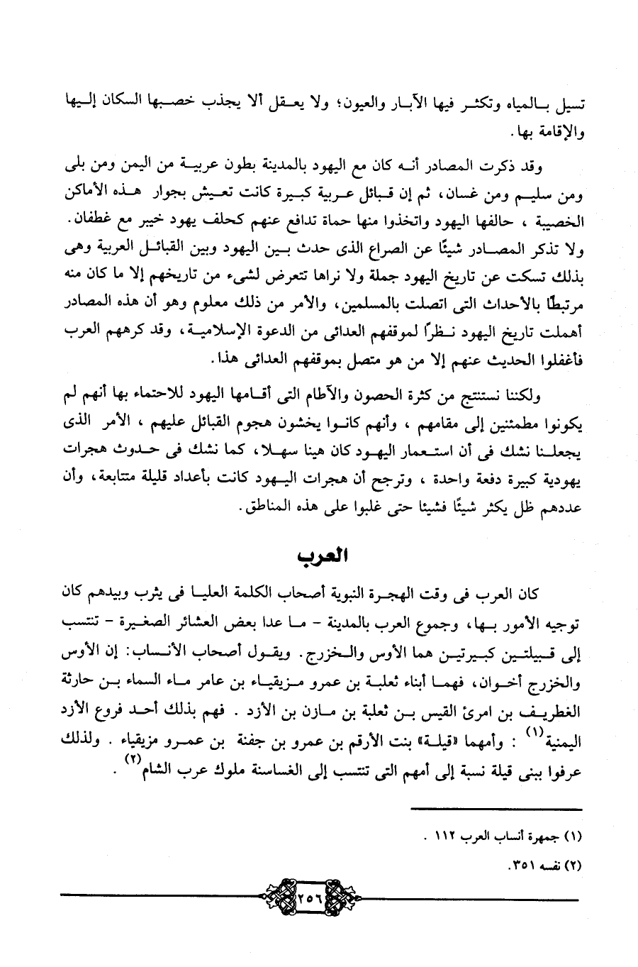 ولكننا نستنتج من كثرة الحصون والآطام التي أقامها اليهود للاحتماء بها أنهم لم يكونوا مطمئنين إلى مقامهم وأنهم كانوا يخشون هجوم القبائل عليهم؛ الأمر الذي يجعلنا نشك في أن استعمار اليهود كان هينًا سهلًا، كما نشك في حدوث هجرات يهودية كبيرة دفعة واحدة، وترجح أن هجرات اليهود كانت بأعداد قليلة متتابعة، وأن عددهم ظل يكثر شيئًا فشيئًا حتى غلبوا على هذه المناطق.