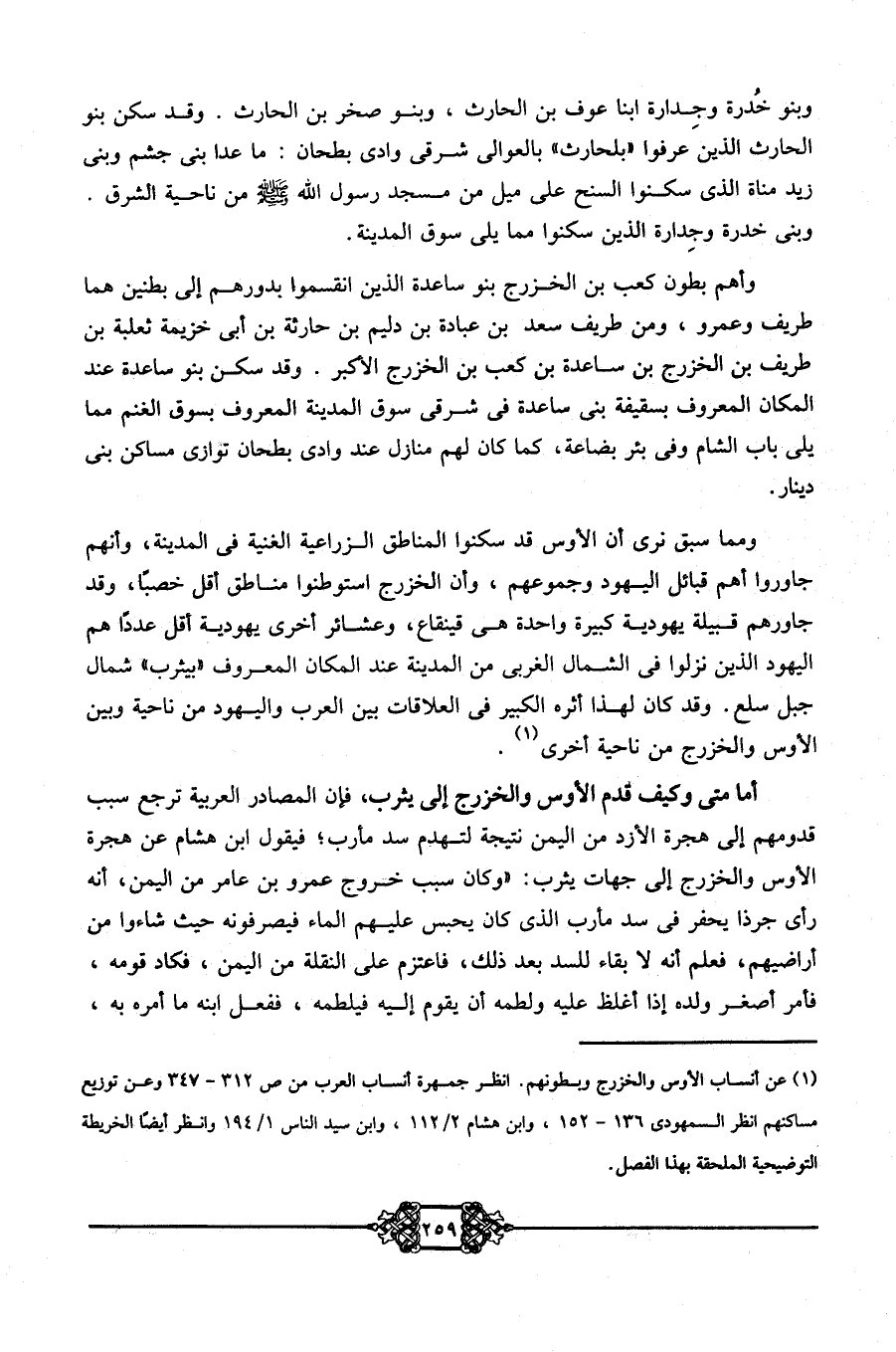 1 عن أنساب الأوس والخزرج وبطونهم. انظر جمهرة أنساب العرب من ص312- 347 وعن توزيع مساكنهم انظر السمهودي 1365- 152، وابن هشام 2/ 112، وابن سيد الناس 1/ 194 وانظر أيضًا الخريطة التوضيحية الملحقة بهذا الفصل.