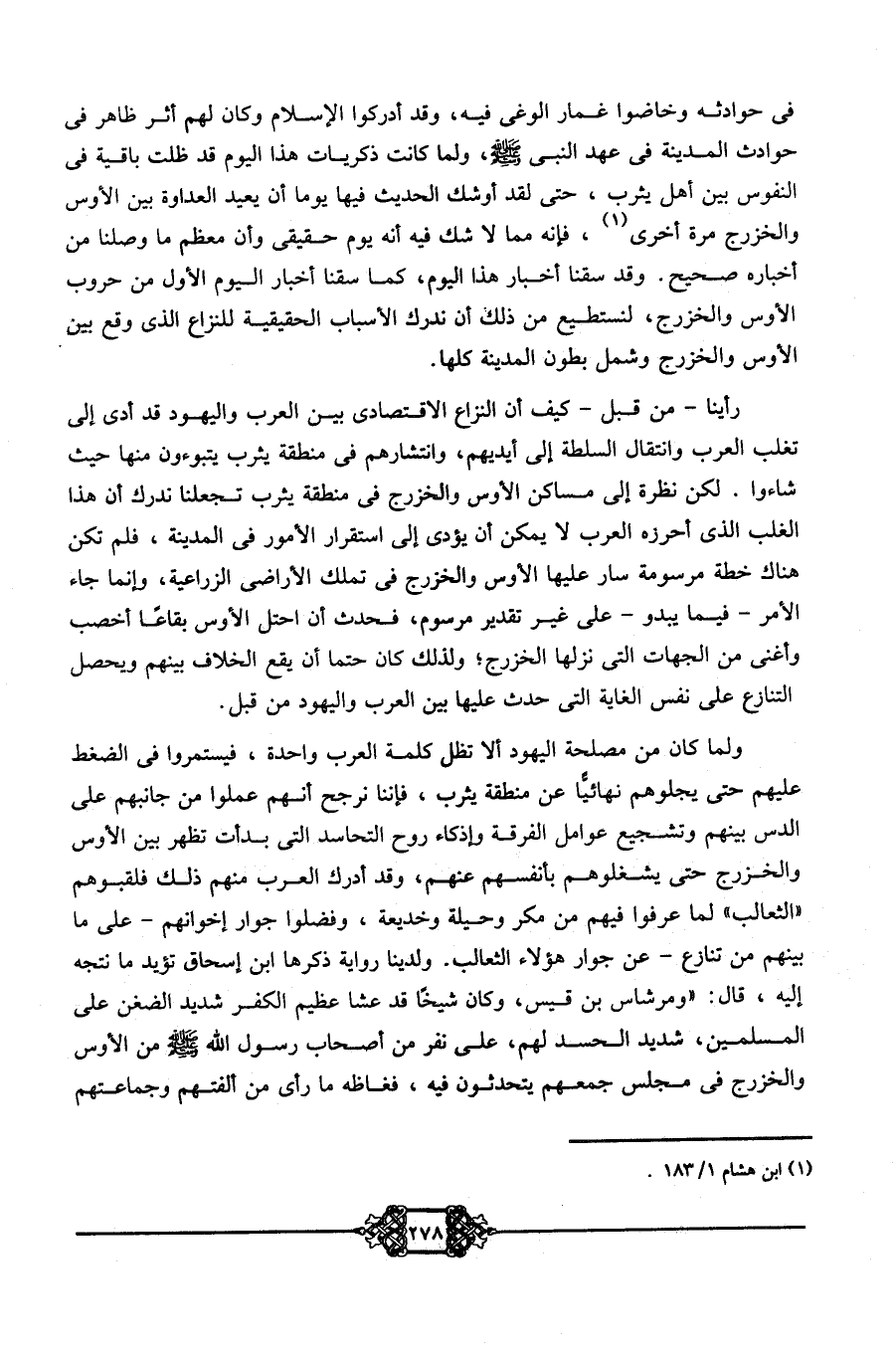 ولما كان من مصلحة اليهود ألا تظل كلمة العرب واحدة، فيستمروا في الضغط عليهم حتى يجلوهم نهائيًّا عن منطقة يثرب، فإننا نرجح أنهم عملوا من جانبهم على الدس بينهم وتشجيع عوامل الفرقة وإذكاء روح التحاسد التي بدأت تظهر بين الأوس والخزرج حتى يشغلوهم بأنفسهم عنهم، وقد أدرك العرب منهم ذلك فلقبوهم الثعالب؛ لما عرفوا فيهم من مكر وحيلة وخديعة، وفضلوا جوار إخوانهم -على ما بينهم من تنازع- عن جوار هؤلاء الثعالب. ولدينا رواية ذكرها ابن إسحاق تؤيد ما نتجه إليه، قال: ومرشاس بن قيس، وكان شيخًا قد عشا عظيم الكفر شديد الضغن على المسلمين، شديد الحسد لهم، على نفر من أصحاب رسول الله -صلى الله عليه وسلم- من الأوس والخزرج في مجلس جمعهم يتحدثون فيه، فغاظه ما رأى من ألفتهم وجماعتهم.