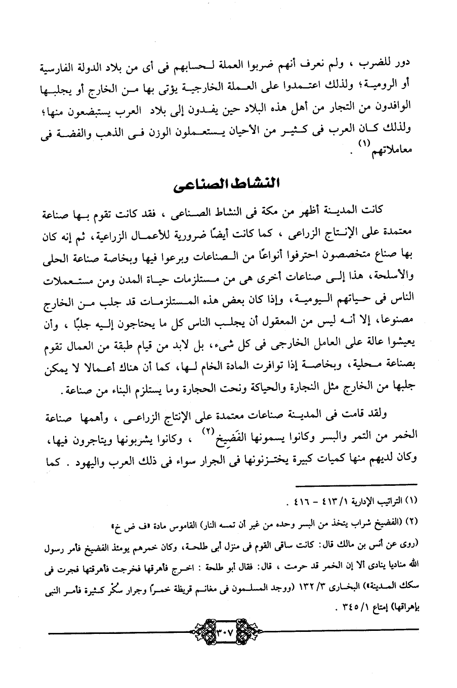 ولقد قامت في المدينة صناعات معتمدة على الإنتاج الزراعي، وأهمها صناعة الخمر من التمر والبسر وكانوا يسمونها الفضيخ1، وكانوا يشربونها ويتاجرون فيها، وكان لديهم منها كميات كبيرة يختزنونها في الجرار سواء في ذلك العرب واليهود. كما