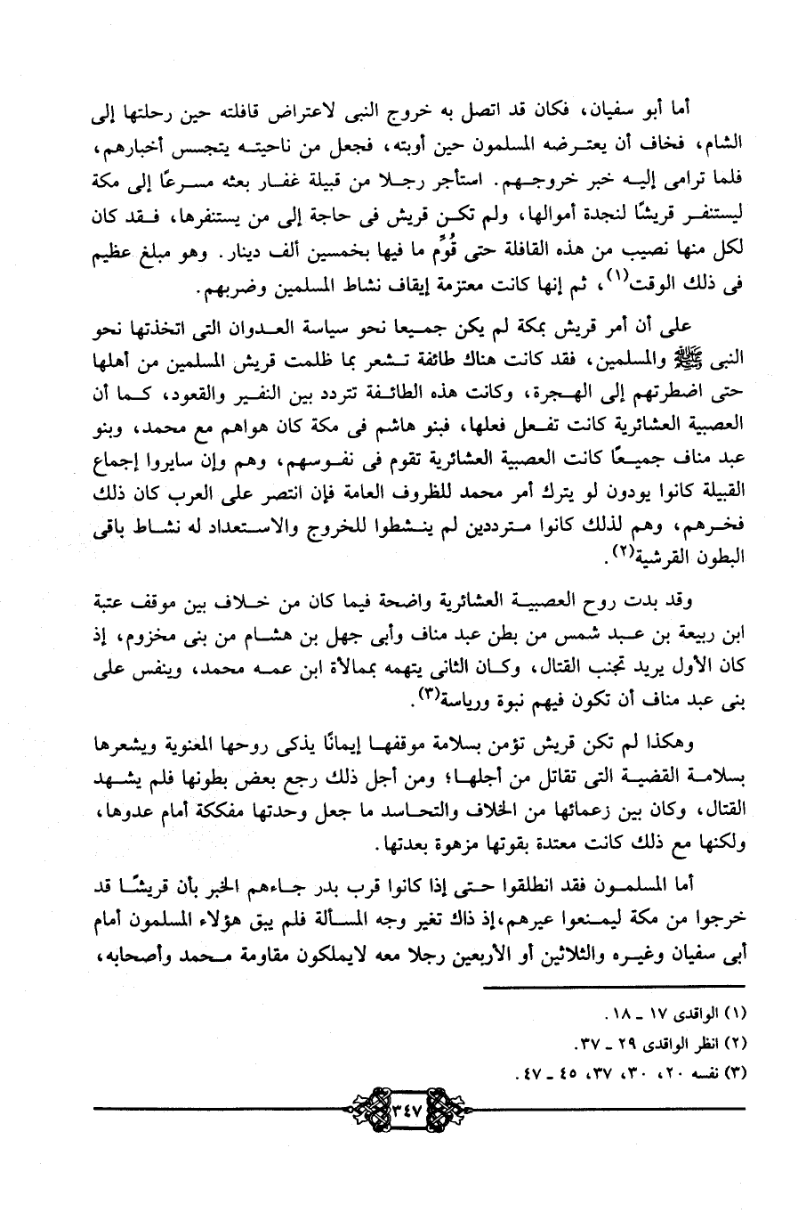 أما المسلمون فقد انطلقوا حتى إذا كانوا قرب بدر جاءهم الخبر بأن قريشًا قد خرجوا من مكة ليمنعوا عيرهم؛ إذ ذاك تغير وجه المسألة فلم يبق هؤلاء المسلمون أمام أبي سفيان وغيره والثلاثين أو الأربعين رجلًا معه لا يملكون مقاومة محمد وأصحابه،