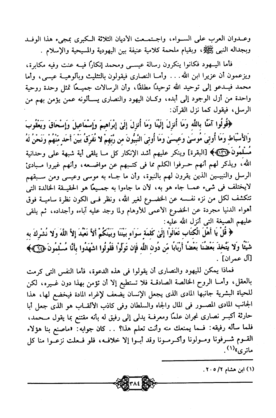 وعدوان العرب على السواء، واجتمعت الأديان الثلاثة الكبرى بمجيء هذا الوفد وبجداله النبي -صلى الله عليه وسلم- وبقيام ملحمة كلامية عنيفة بين اليهودية والمسيحية والإسلام.