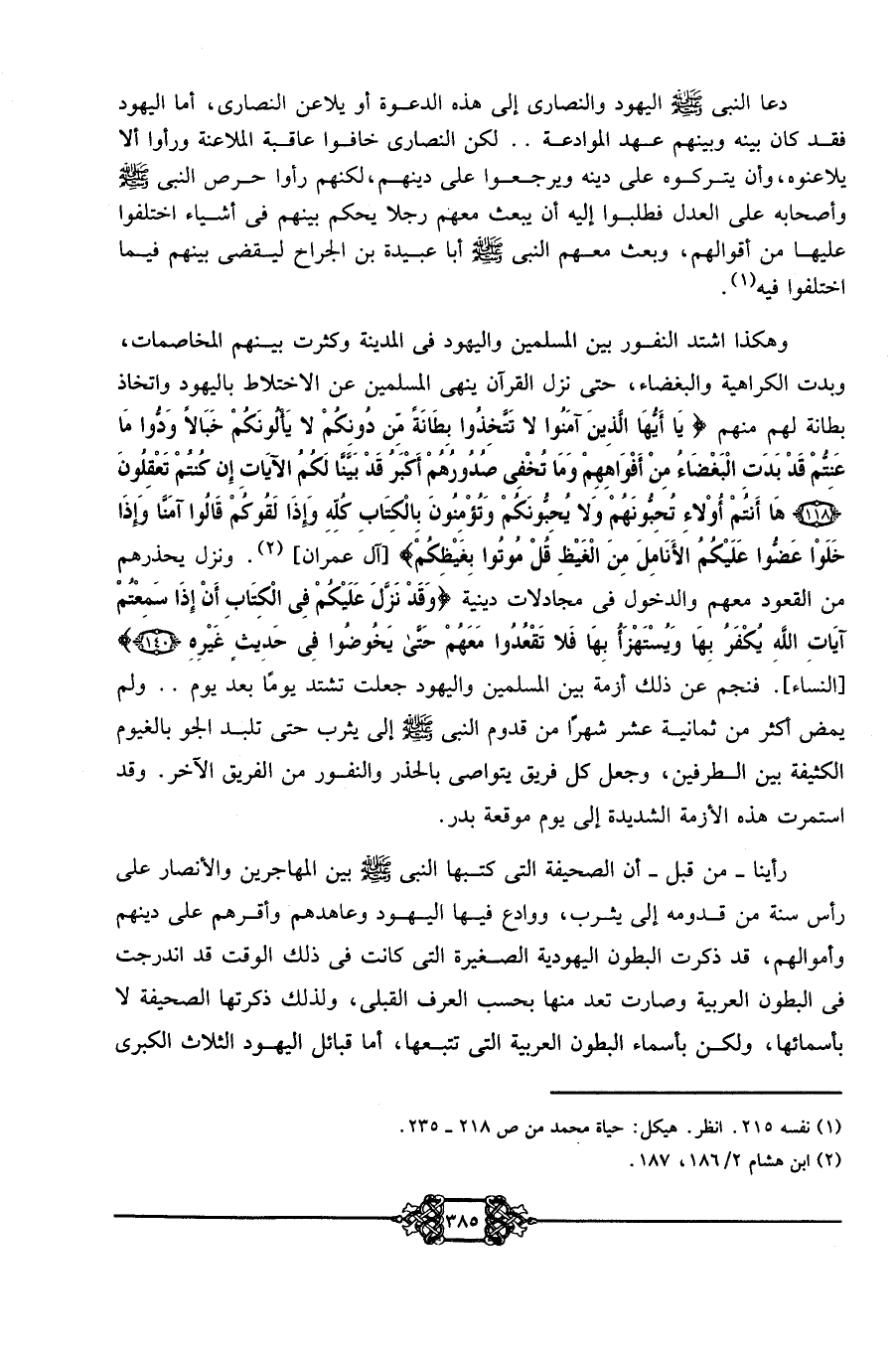 1 نفسه 215. انظر هيكل: حياة محمد من ص: 218- 235.