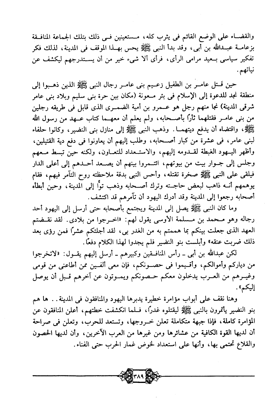 والقضاء على الوضع القائم في يثرب كله، مستعينين في ذلك بتلك الجماعة المنافقة بزعامة عبد الله بن أبي، وقد بدأ النبي -صلى الله عليه وسلم- يحس بهذا الموقف في المدينة، لذلك فكر تفكيرًا سياسيًّا بعيدًا عن مرامي الرأي، فرأى ألا شيء خير من أن يستدرجهم ليكشف عن نياتهم.