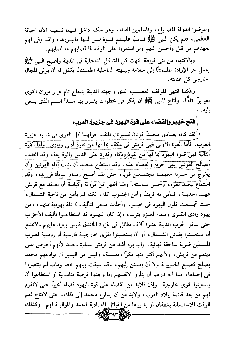 لقد كان يعادي محمدٌ قوتين كبيرتين تلتف حولهما كل القوى في شبه جزيرة العرب، فأما القوة الأولى فهي قريش في مكة، بما لها من نفوذ أدبي ومادي، وأما القوة الثانية فهي قوة اليهود بما لها من نفوذ وذكاء وقدرة على الدس والوقيعة، وقد اتحدت مصالح القوتين على حربه والقضاء عليه. وقد استطاع محمد أن يثبت أمام القوتين وأن يخرج من حربه معهما -مجتمعينِ- قويًّا، حتى لقد أصبح زمام المبادأة في يده، وقد استطاع ببعد نظره، وحسن سياسته، وما أظهر من مرونة وكياسة أن يعقد مع قريش عهد الحديبية، فأمِن به قريشًا وأمن الجنوب كله؛ لكنه لم يأمن من ناحية الشمال، حيث تجمعت فلول اليهود في خيبر، وأخذت تسعى لتأليف كتلة يهودية منهم، ومن يهود وادي القرى وتيماء لغزو يثرب، وإذا كان اليهود قد استطاعوا تأليف الأحزاب حتى ساقوا لحرب المدينة عشرة آلاف مقاتل في غزوة الخندق؛ فليس ببعيد عليهم ولا ممتنع أن يستعينوا بقبائل الشمال، أو أن يستعينوا بقوى خارجية فارسية أورومية لضرب المسلمين ضربة ساحقة نهائية. واليهود أشد من قريش عداوة لمحمد؛ لأنهم أحرص على دينهم من قريش، ولأنهم أكثر منها مكرًا ودسيسة، وليس من اليسير أن يوادعهم محمد بصلح كصلح الحديبية ولا أن يطمئن إليهم، وقد سبقت بينهم خصومات لم ينتصروا في إحداها؛ فما أجدرهم أن يثأروا لأنفسهم إذا وجدوا فرصة مناسبة أو استطاعوا أن يستعينوا بقوى خارجية. وإذن فلا بد من القضاء على قوة اليهود قضاء أخيرًا حتى لا تقوم لهم من بعد قائمة ببلاد العرب، ولابد من أن يسارع محمد إلى ذلك، حتى لا يتاح لهم الوقت للاستعانة بغطفان أو بغيرها من القبائل المعادية لمحمد والموالية لهم. وكذلك
