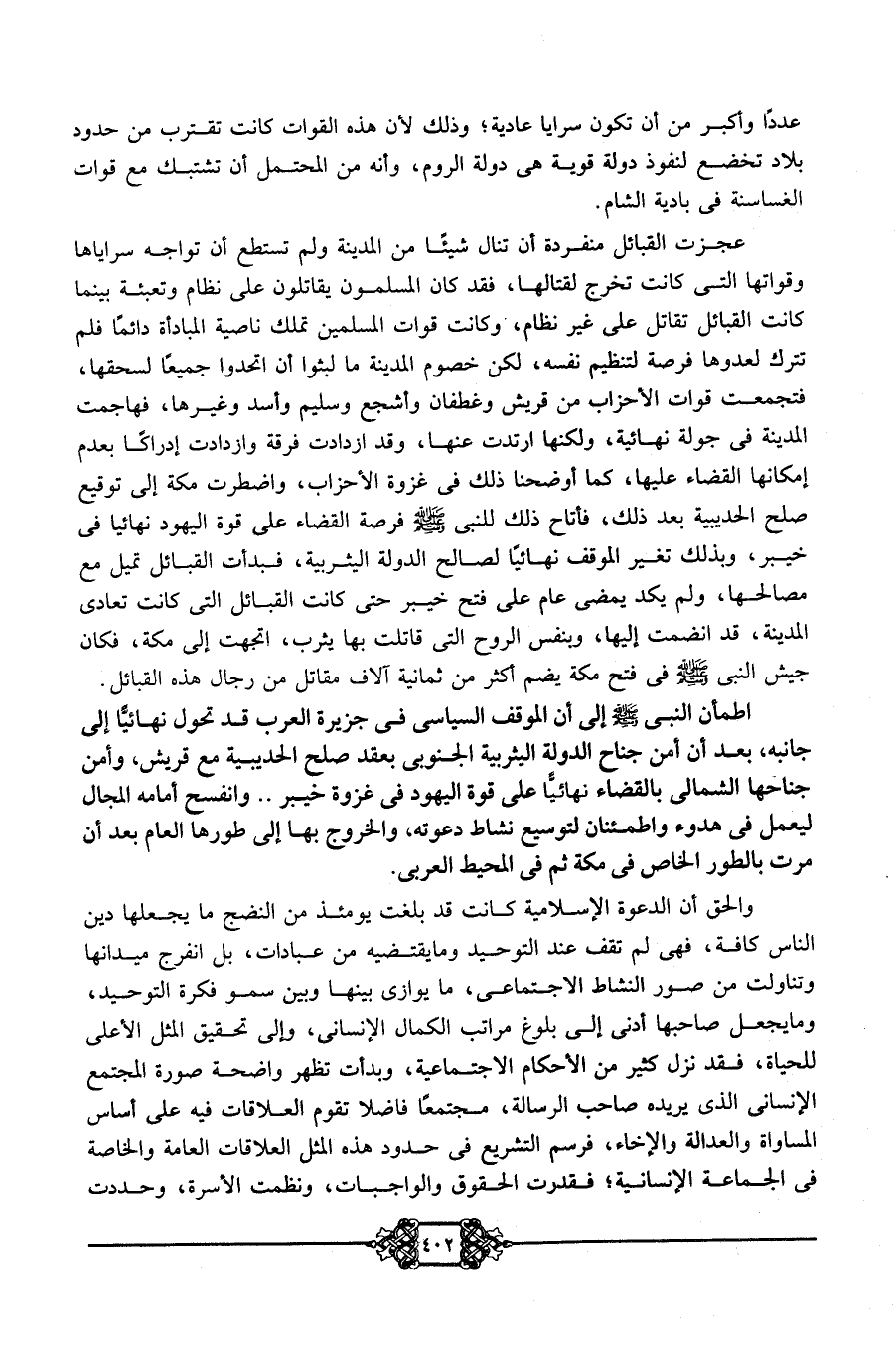 والحق أن الدعوة الإسلامية كانت قد بلغت يومئذ من النضج ما يجعلها دين الناس كافة، فهي لم تقف عند التوحيد وما يقتضيه من عبادات، بل انفرج ميدانها وتناولت من صور النشاط الاجتماعي، ما يوازي بينها وبين سمو فكرة التوحيد، وما يجعل صاحبها أدنى إلى بلوغ مراتب الكمال الإنساني، وإلى تحقيق المثل الأعلى للحياة؛ فقد نزل كثير من الأحكام الاجتماعية، وبدأت تظهر واضحة صورة المجتمع الإنساني الذي يريده صاحب الرسالة، مجتمَعًا فاضلًا تقوم العلاقات فيه على أساس المساواة والعدالة والإخاء، فرسم التشريع في حدود هذه المثل العلاقات العامة والخاصة في الجماعة الإنسانية، فقدرت الحقوق والواجبات ونظمت الأسرة وحددت