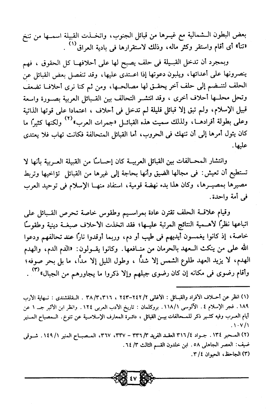 1 انظر عن أحلاف الأفراد والقبائل: الأغاني2/ 242- 243، 316، 3/ 38. القلقشندي: نهاية الأرب 189. فجر الإسلام4. الآلوسي 1/ 118. بروكلمان: تاريخ الأدب العربي 124. وانظر ابن الأثير ج1 عن أيام العرب وفيه كثير ذكر للمحالفات بين القبائل، دائرة المعارف الإسلامية عن تنوخ. المصباح المنير 1/ 107.
