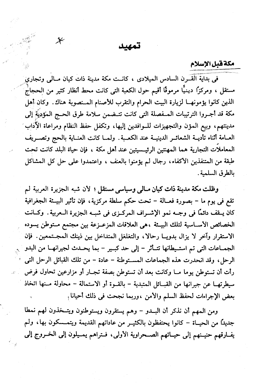 وظلت مكة مدينة ذات كيان مالي وسياسي مستقل؛ لأن شبه الجزيرة العربية لم تقع في يوم ما -بصورة فعالة- تحت حكم سلطة مركزية, فإن تأثير البيئة الجغرافية كان يقف دائمًا في وجه نمو الإشراف المركزي في شبه الجزيرة العربية. وكانت الخصائص الأساسية لتلك البيئة، هي العلاقات المزعزعة بين مجتمع متوطن يسوده الاستقرار وآخر لا يزال بدويًّا رحالًا، والتغلغل المتداخل بين ذينك المجتمعين. فإن الجماعات التي تم استيطانها تتأثر -إلى حد كبير- بما يحدث لجيرانها من البدو الرحل، وقد انحدرت هذه الجماعات المستوطنة -عادة- من تلك القبائل الرحل التي رأت أن تستوطن يومًا ما وكانت بعد أن تستوطن بصفة تجار أو مزارعين تحاول فرض سيطرتها عن جيرانها من القبائل المتبدية- بالقوة أو الاستمالة- محاولة منها اتخاذ بعض الإجراءات لحفظ السلم والأمن, وربما نجحت في ذلك أحيانًا.