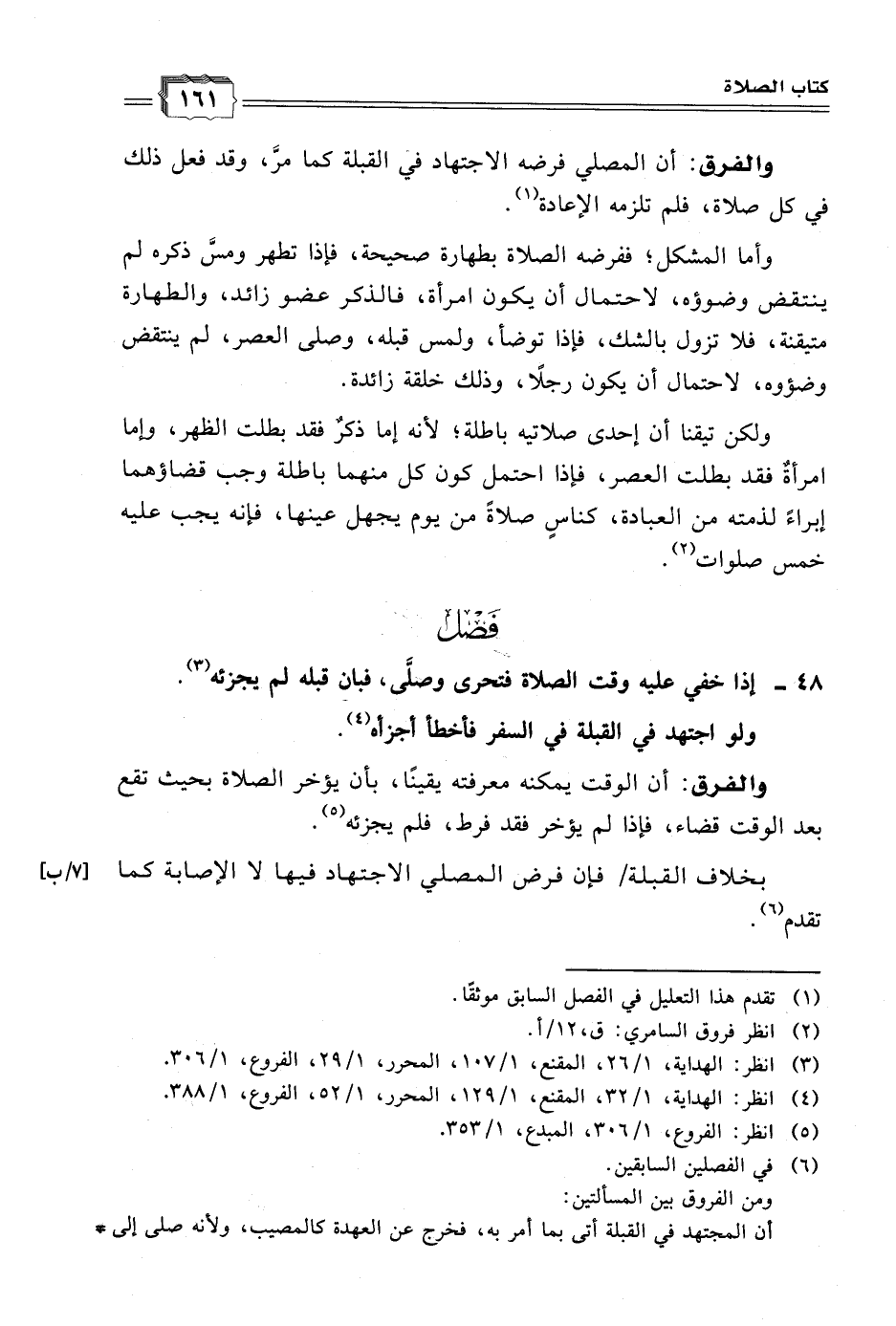(٥) انظر: الفروع، ١/ ٣٠٦، المبدع، ١/ ٣٥٣.