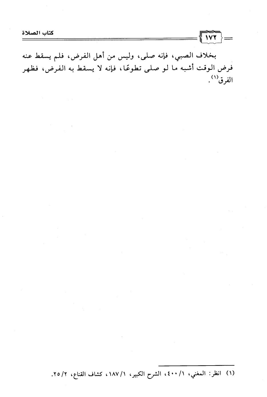 (١) انظر: المغني، ١/ ٤٠٠، الشرح الكبير، ١/ ١٨٧، كشاف القناع، ٢/ ٢٥.