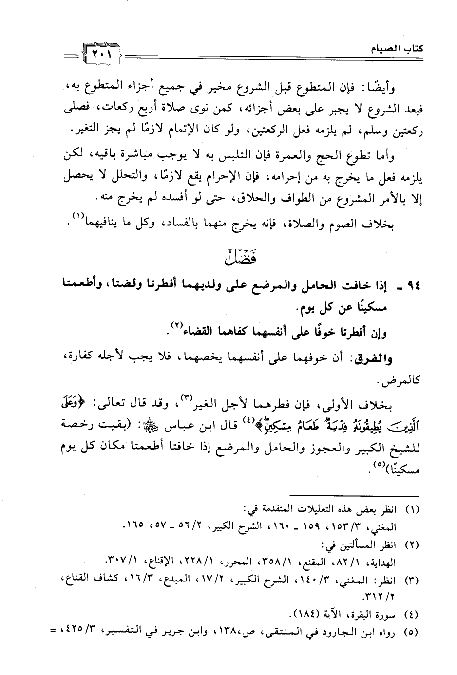 (٣) انظر: المغني، ٣/ ١٤٠، الشرح الكبير، ٢/ ١٧، المباع، ٣/ ١٦، كشاف القناع, ٢/ ٣١٢.