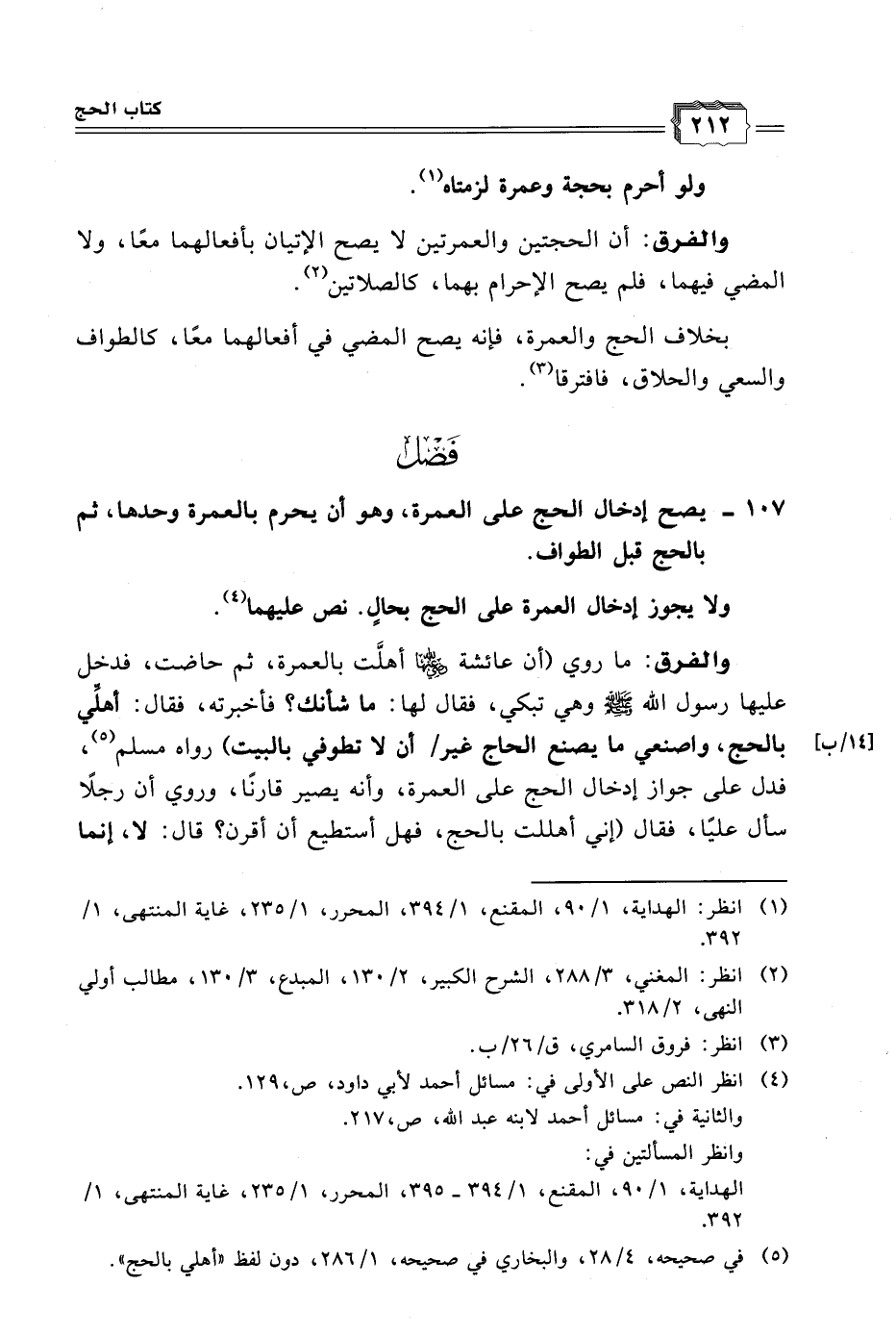 ١٠٧ - يصح إدخال الحج على العمرة، وهو أن يحرم بالعمرة وحدها، ثم بالحج قبل الطواف.