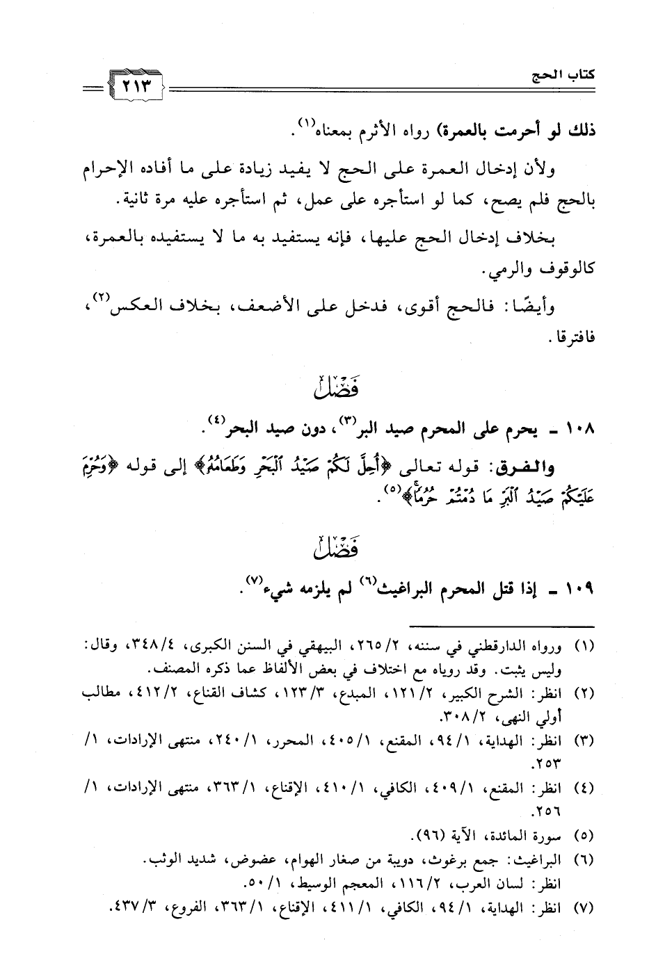 (٧) انظر: الهداية، ١/ ٩٤، الكافي، ١/ ٤١١، الإقناع، ١/ ٣٦٣، الفروع، ٣/ ٤٣٧.