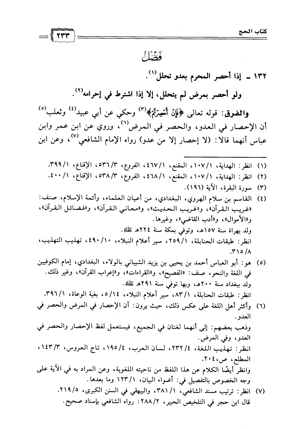 (٦) وأكثر أهل اللغة على عكس ذلك، حيث يرون: أن الإحصار في المرض والحصر في العدو.