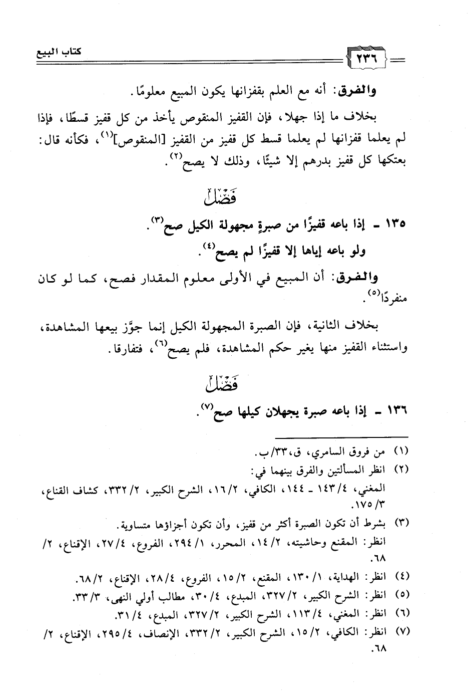 ١٣٥ - إذا باعه قفيزًا من صبرةٍ مجهولة الكيل صح (٣).