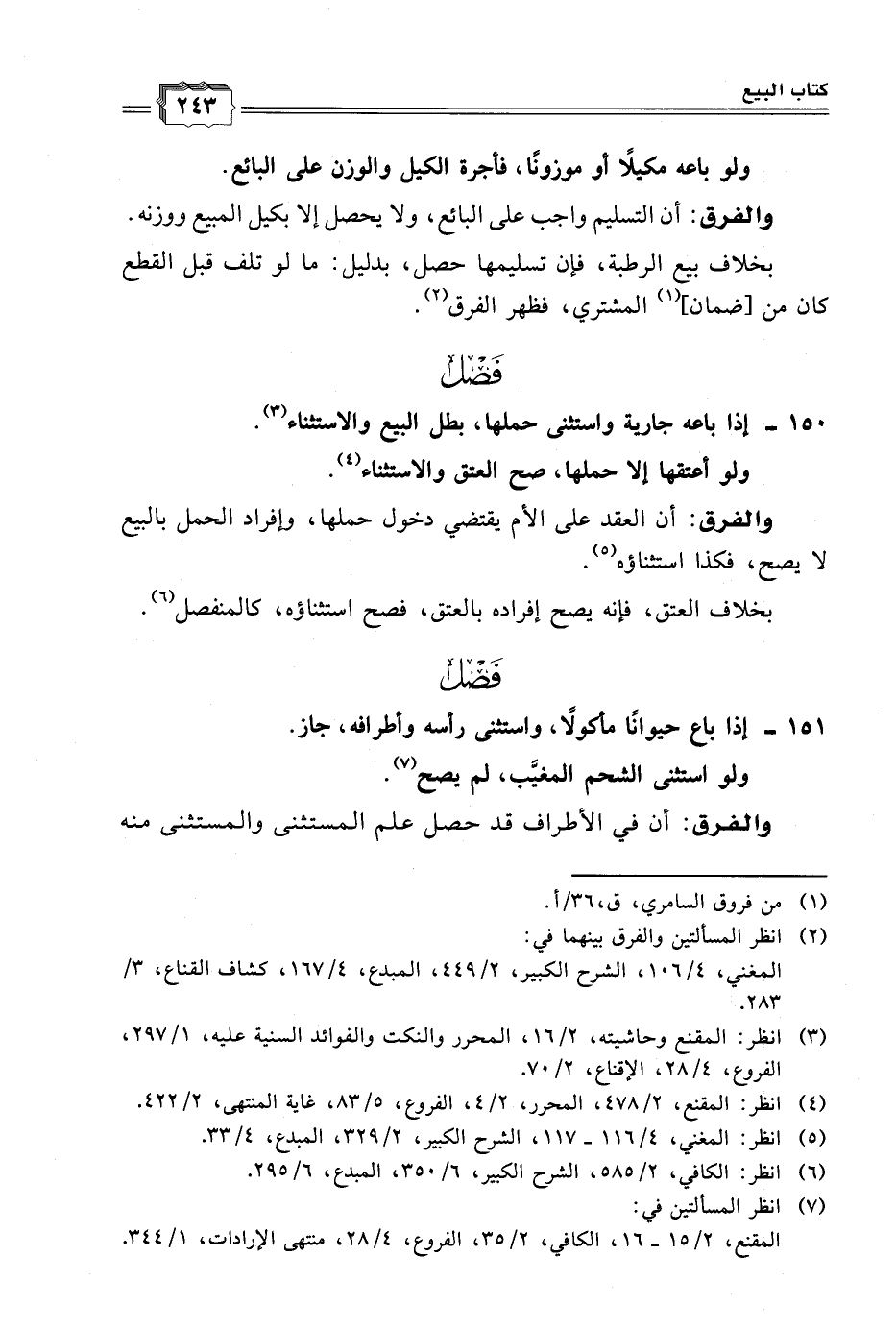 ١٥١ - إذا باع حيوانًا مأكولًا، واستثنى رأسه وأطرافه، جاز.