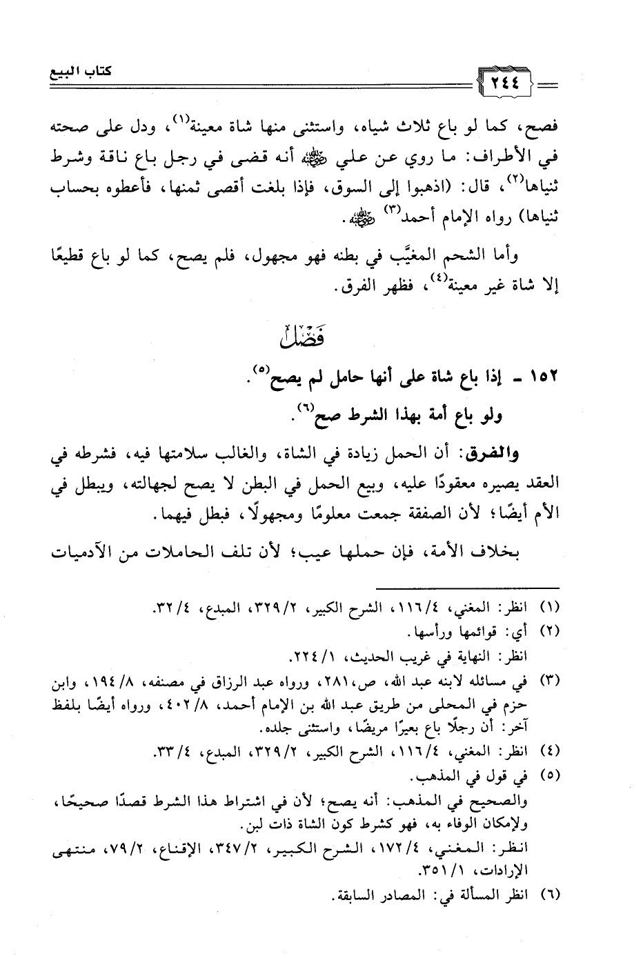 ١٥٢ - إذا باع شاة على أنها حامل لم يصح (٥).