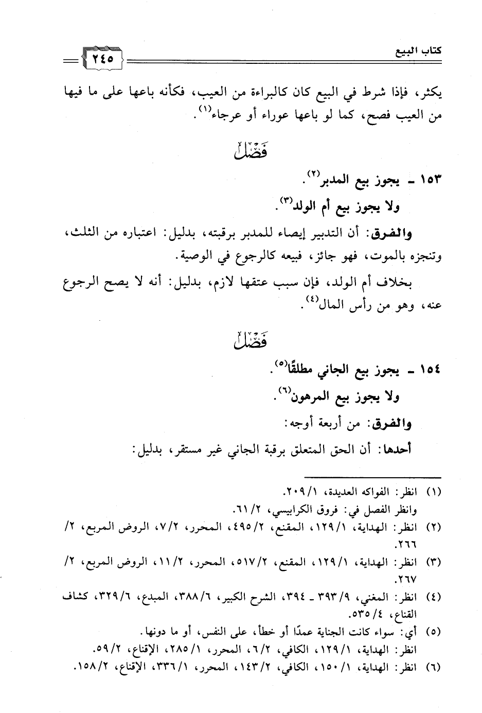 (٦) انظر: الهداية، ١/ ١٥٠، الكافي، ٢/ ١٤٣، المحرر، ١/ ٣٣٦، الإقناع، ٢/ ١٥٨.